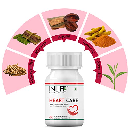 INLIFE Heart Care Supplement | Arjuna Moringa Ashwagandha Green Tea & Curcumin | Ayurvedic Product for Men Women - 60 Vegetarian Capsules (Pack of 1, 60)
