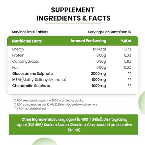GLUCOSAMINE FOR KNEE : MSM (methylsulfonylmethane) o known as dimethyl sulfone (DMSO2) and methyl sulfone is aHIMALAYAN ORganic sulfur-containing compound that is essential for optimal health. This supports healthy cartilage formation and joint comfort an