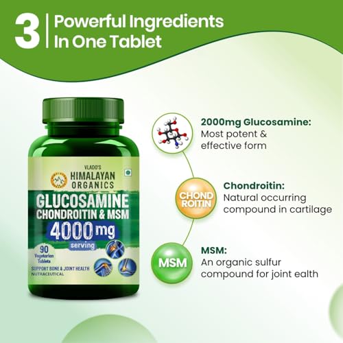 GLUCOSAMINE FOR JOINT: HIMALAYAN ORganics Glucosamine Chondroitin MSM Tabs. are a blend of best-known ingredients for bone and health. Glucosamine is valued as a key ingredient in joint care formulas. Chondroitin promotes water retention within the joint