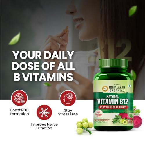 HomeHealth & PersonalDiet & NutritionHealth SupplementsVlado's Himalayan Organics Plant Based Vitamin B12 Supplement- with Vitamin B1,B2,B3,B5,B6,B7,B9,Moringa | 100% Natural | Support Nerve Health & Brain Function I Energy Production, Energy, Maximize Absorption, Boost Metabolism I Active form of Vitamin B12