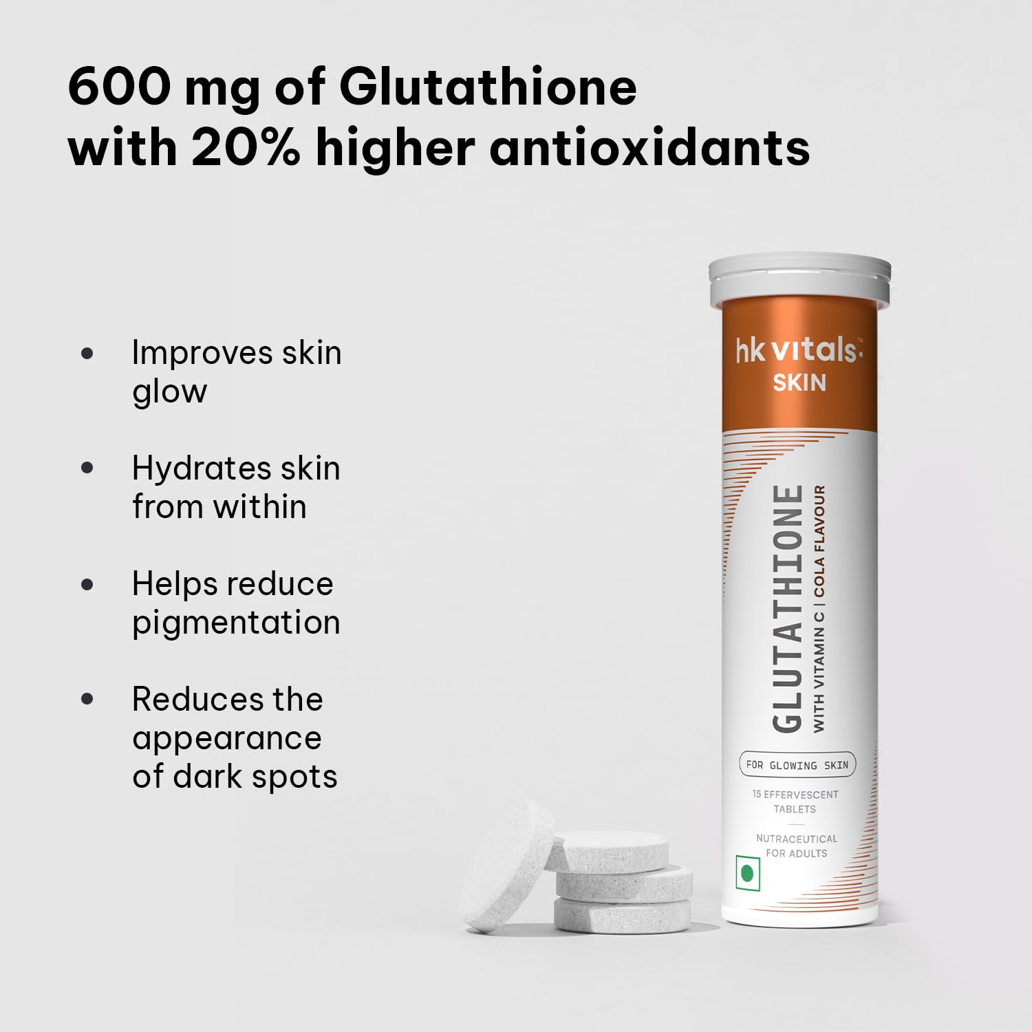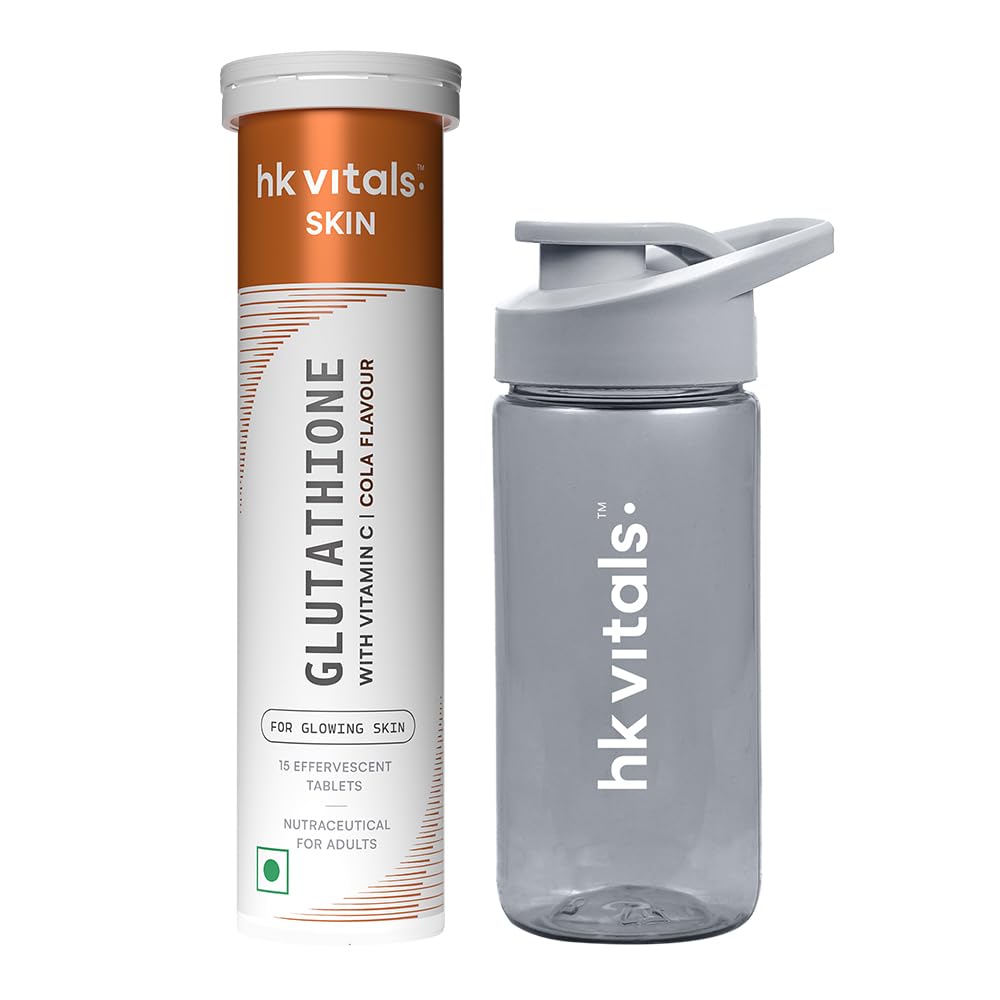 hk vitals Glutathione (Cola 15 Effervescent Tablets) | L-Glutathione Tablets with Vitamin C & E | For Skin Glow & Hydration with Sipper