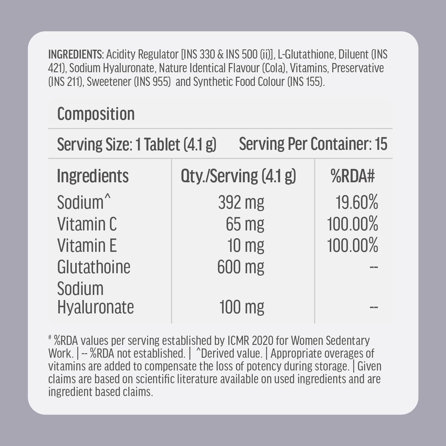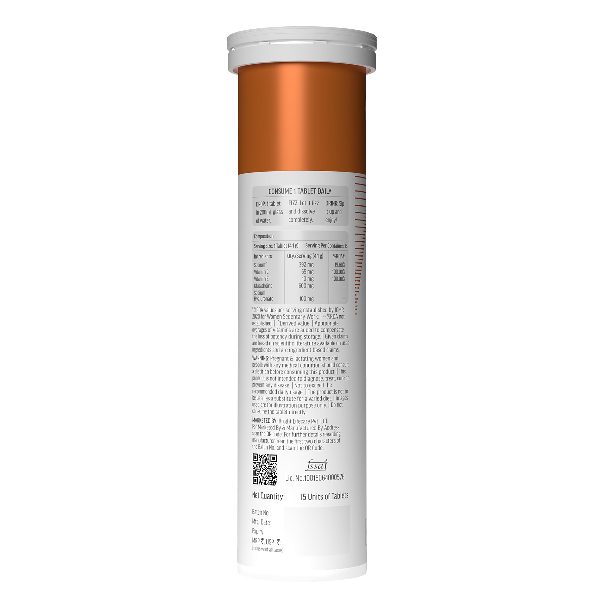 RECOMMENDED DOSAGE: One hk vitals Glutathione Effervescent tablet daily will help improve your skin glow & reduce pigmentation