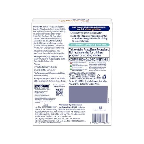Zero Added Sugar for Health-conscious Living: Horlicks Strength Plus is committed to promoting health-conscious choices by being completely free of added sugars.