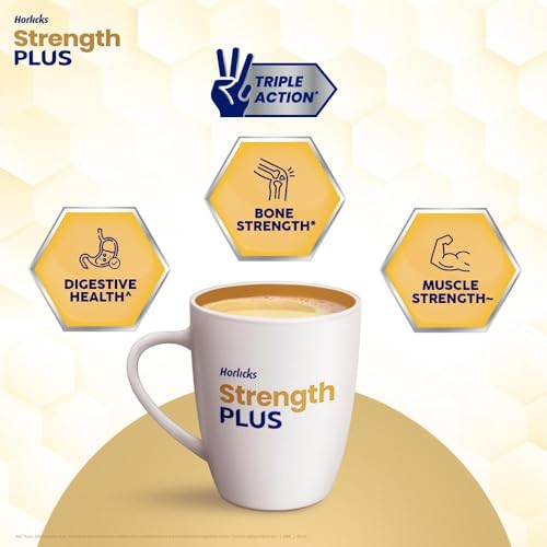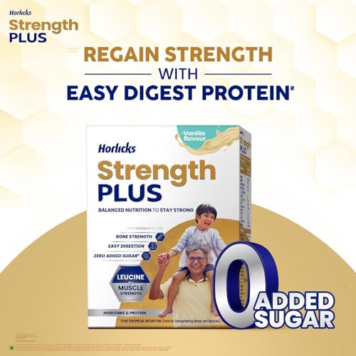 Easy-to-Digest Protein and Leucine: Tailored for the ageing body Horlicks Strength Plus contains easy-to-digest protein and Leucine essential for building and maintaining muscle strength.