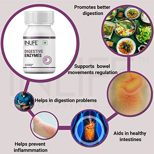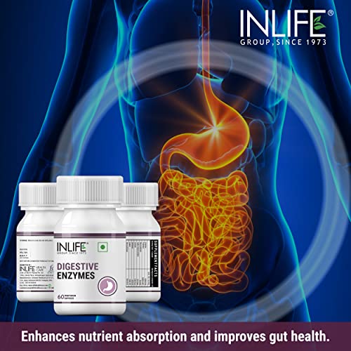 INLIFE Digestive Enzymes Supplement | Contains 12 Naturally Sourced & Essential Enzymes | Supports Healthy Digestion - 60 Vegetarian Capsules (Pack of 2, 120.00)