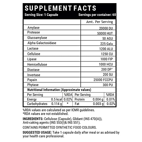 NUTRIENT ABSORPTION: Contains a mixture of vegetarian enzymes developed to promote nutrient bioavailability and absorption. Digestive enzymes are highly specific agents that help transform the food we eat into the nutrition our bodies need. It breaks down