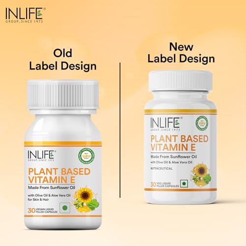 INLIFE Plant Based Natural Vitamin E Oil Capsules for Face and Hair | Sunflower Olive & Aloe Vera Oi