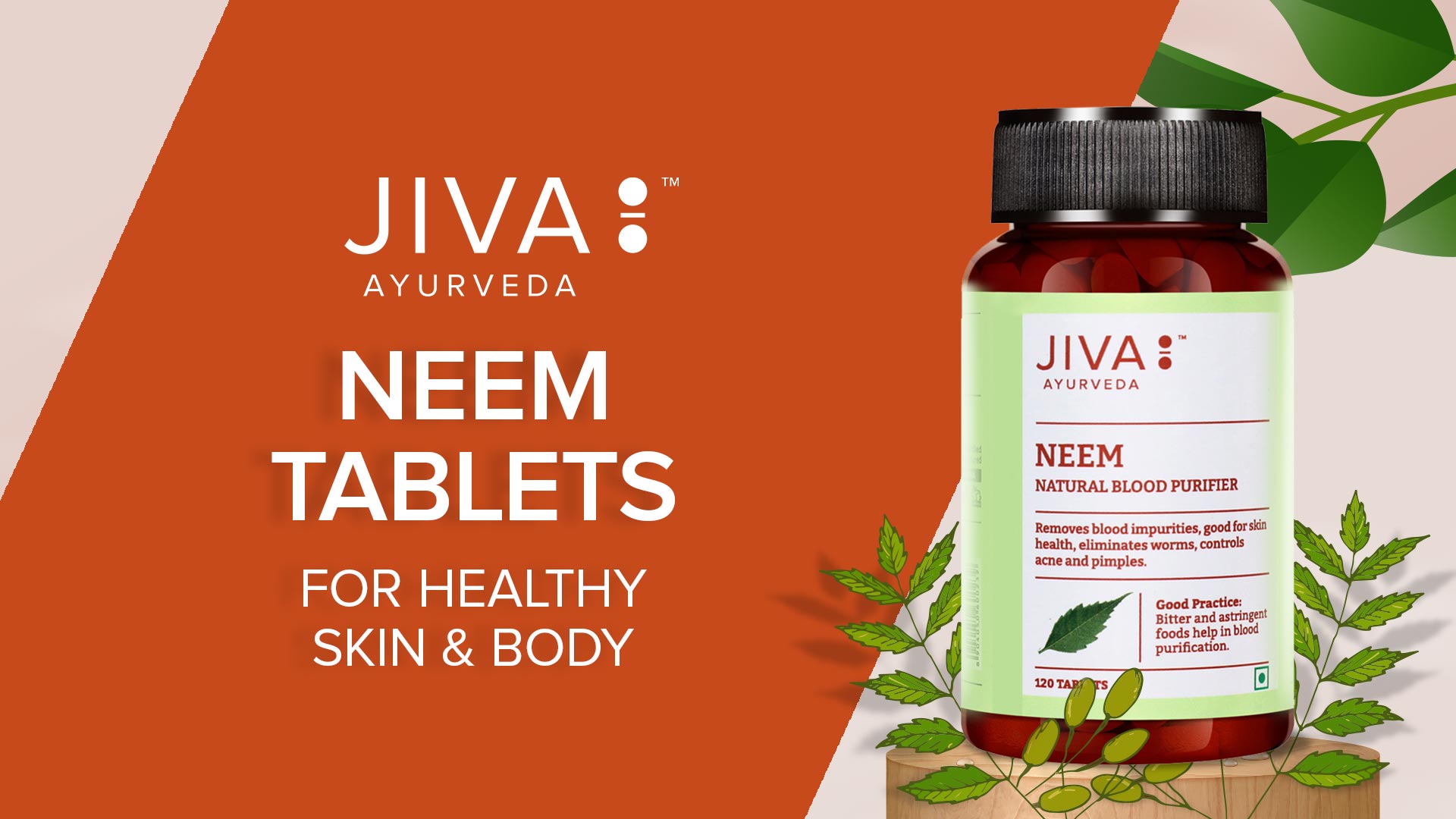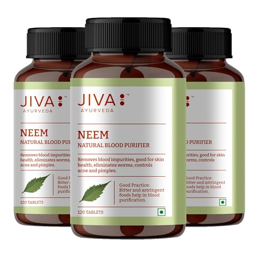 Jiva Neem Ayurvedic Tablets 500mg | Natural Blood Purifier | Skin Wellness | Controls Acne and Pimples | Veg Tablets | 100% Pure & Natural - 120 Tablet (Pack of 3)