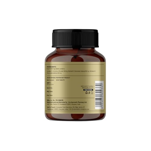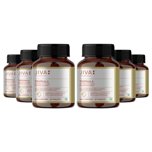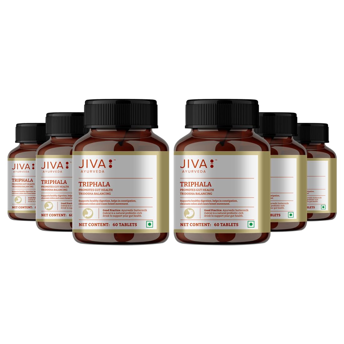 Jiva Triphala Tablet 500mg | 100% Ayurvedic Formulation Improves Digestion, Promotes Gut Health & Relieves Constipation | Balances 3-Doshas | Excellent For Eye & Hair Issues - 60 Tablets (Pack Of 6)