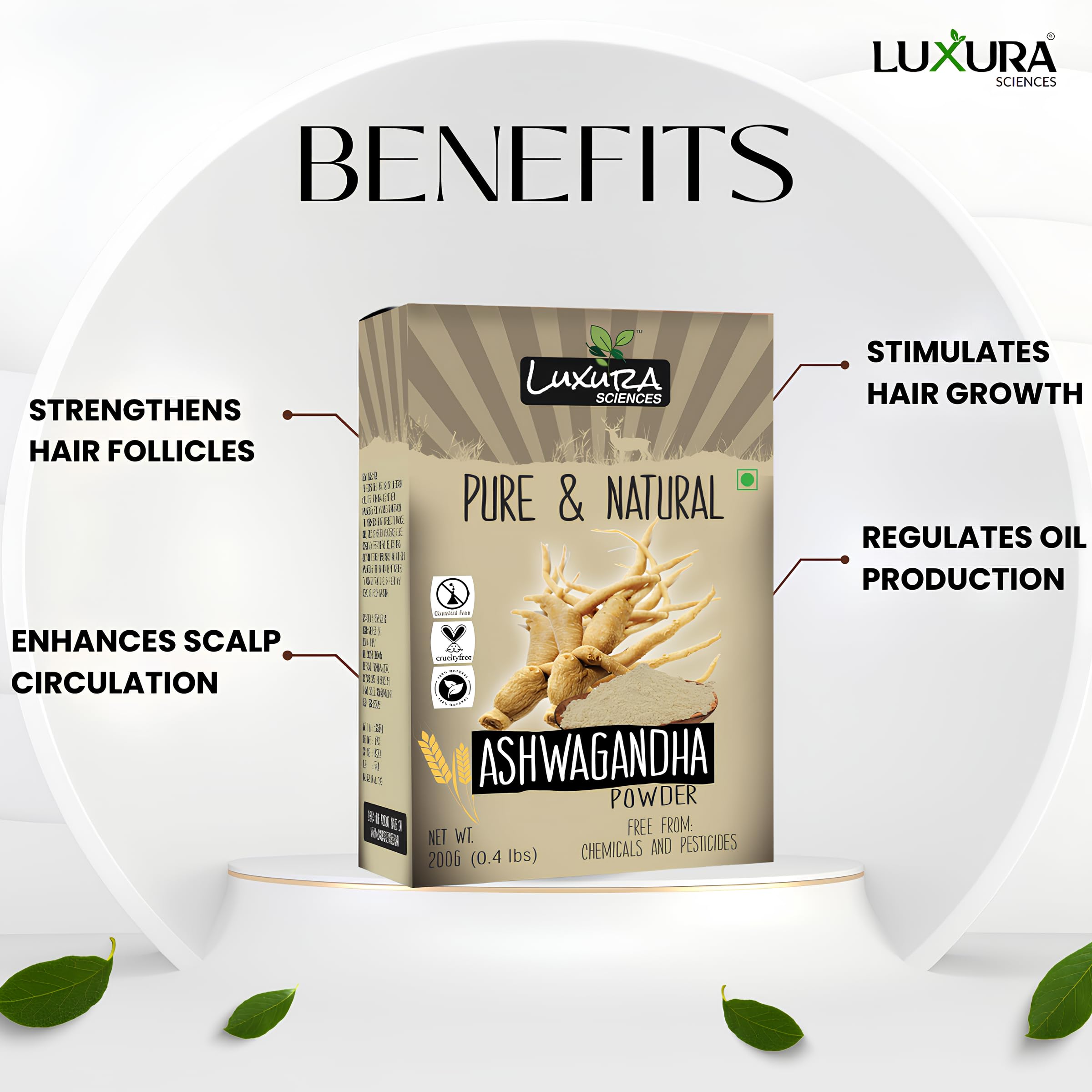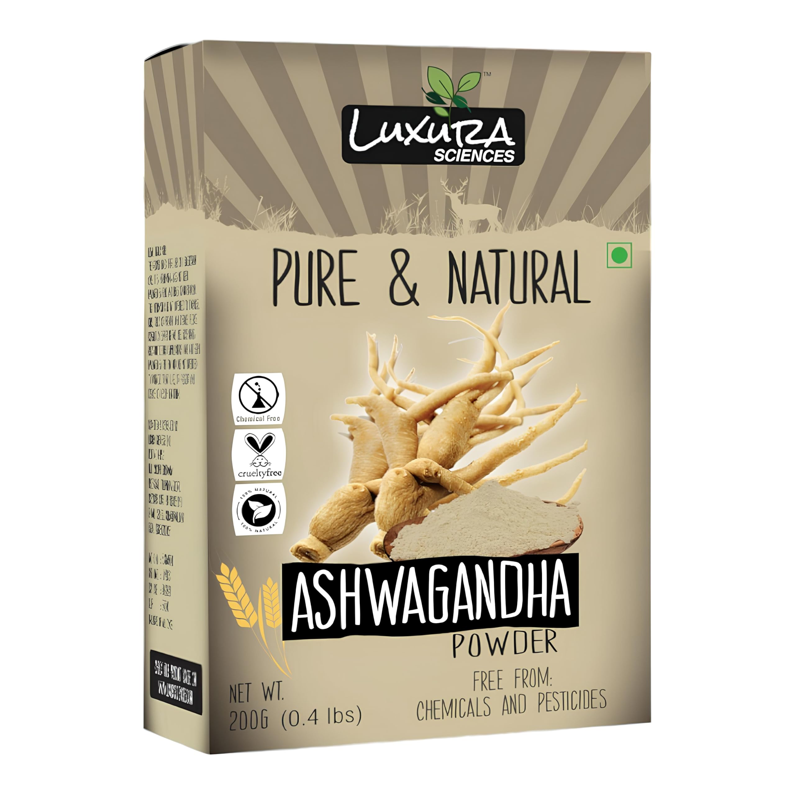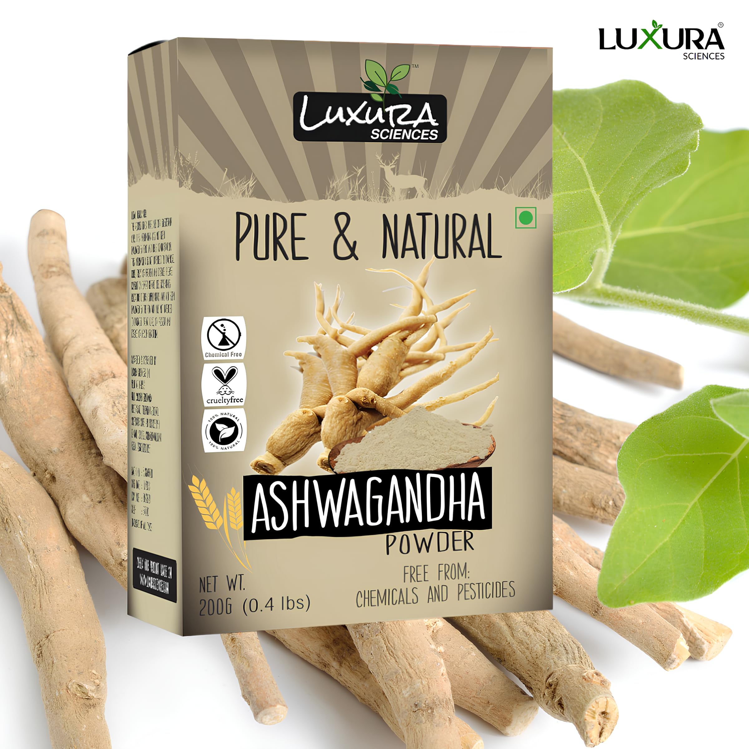 Luxura Sciences Natural Ashwagandha Powder 200 Grams (Withania somnifera) Natural Double Filtered and Quality Guaranteed.FSSAI Approved.