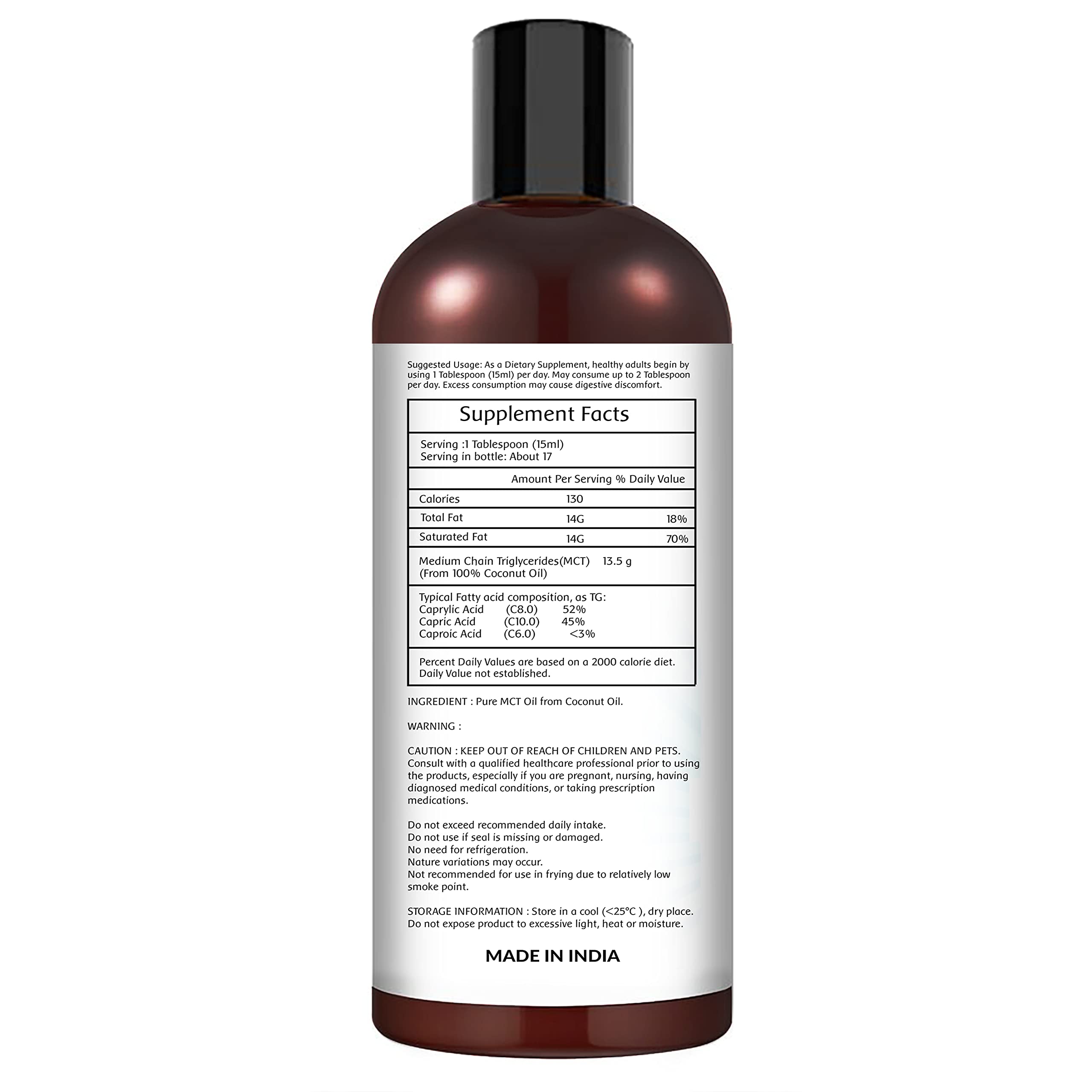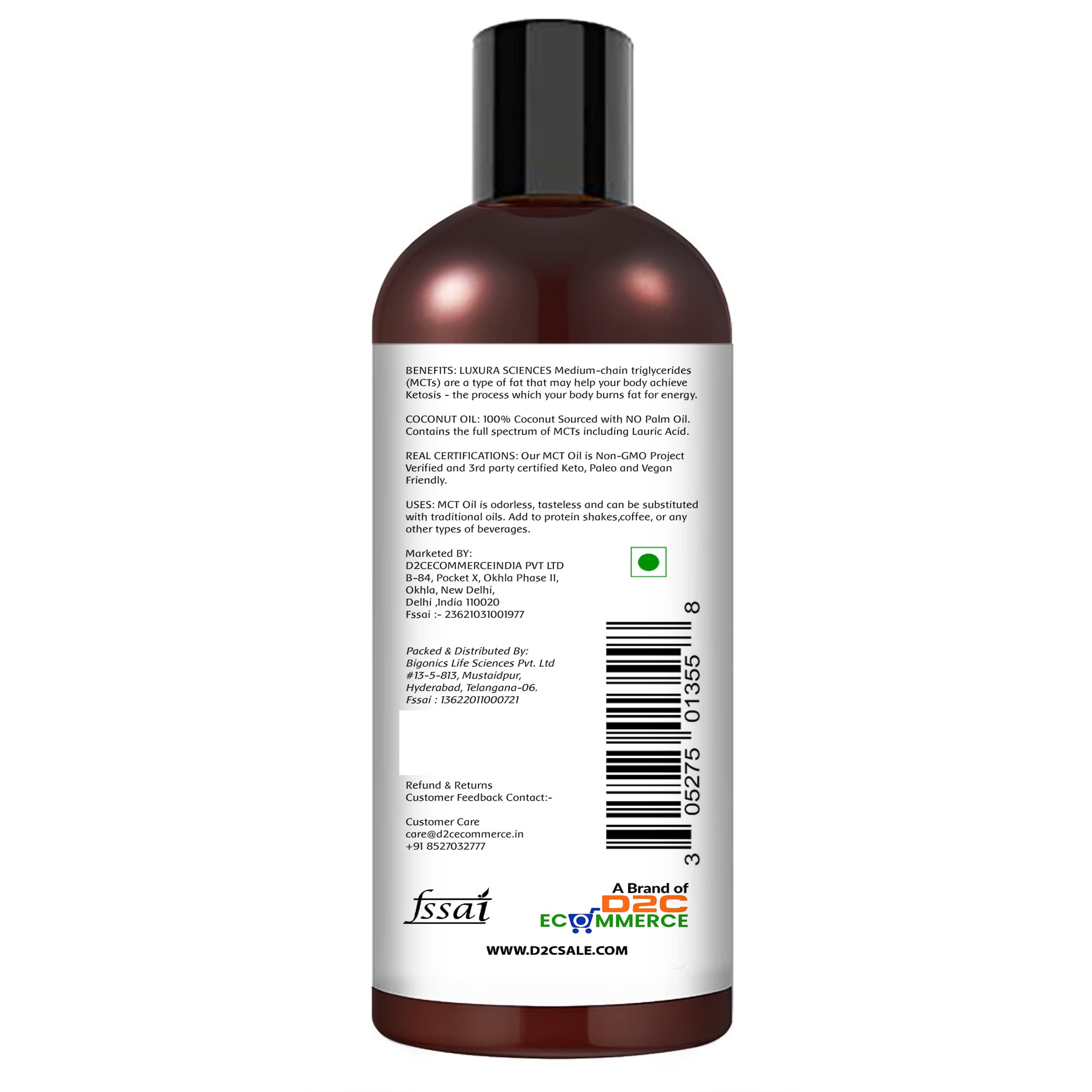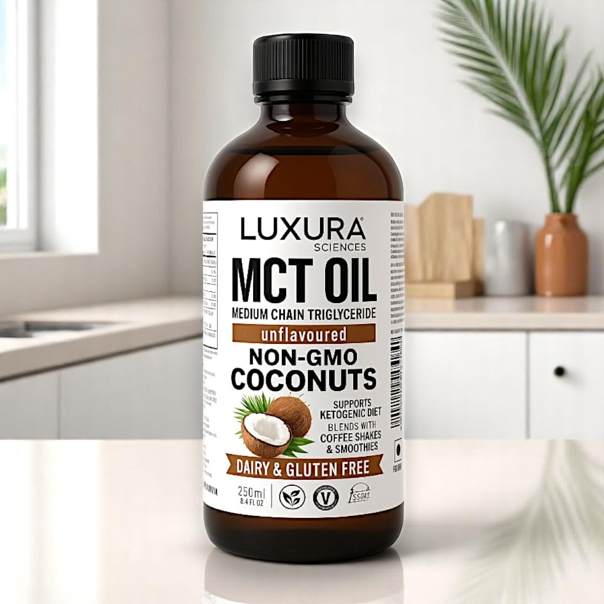 Luxura Sciences Organic MCT OIL 250 ML | Supports Ketogenic Diet |Dairy & Gluten Free | For Weight & Energy Management| Non-GMO