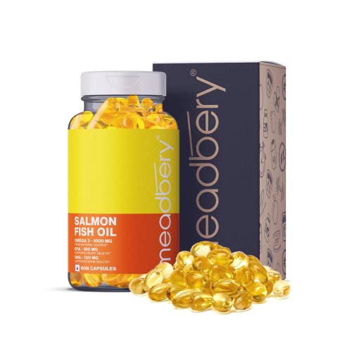 HomeHealth & PersonalDiet & NutritionHealth SupplementsMeadbery Salmon Omega 3 Fish Oil (60N)|1000mg High Strength Omega 3 Supplement With No Fishy Burps for Healthy Heart, Brain & Body, Omega3 Fatty Acid Capsules for Women & Men