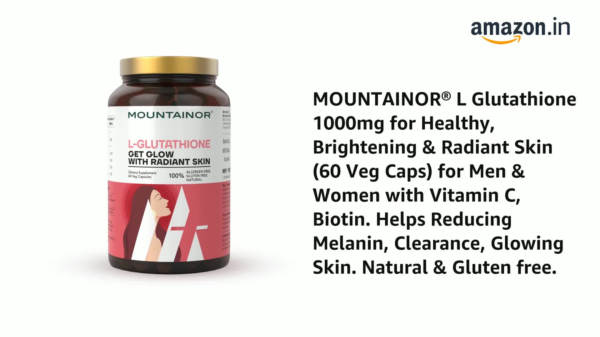 MOUNTAINOR L Glutathione 1000mg For Healthy, Brightening & Radiant Skin (60 Veg Caps) For Men & Women With Vitamin C, Biotin