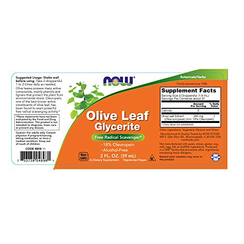 Now Foods Olive Leaf Extract, 2 OZ 18% STD GLYCERITE