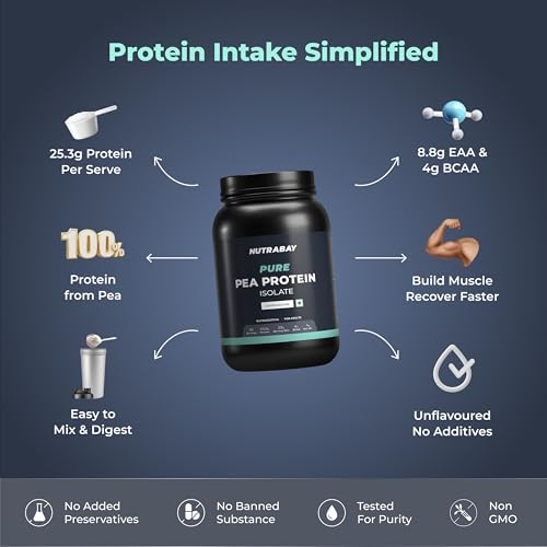HomeHealth & PersonalSports & fitnessSports SupplementsNutrabay Pure Pea Protein Isolate - 25.3g Protein, 5g BCAA, Designed for Meal Supplementation, Easy to Digest Plant Protein for Muscle Growth & Recovery - 1 Kg Unflavoured, 30 Servings