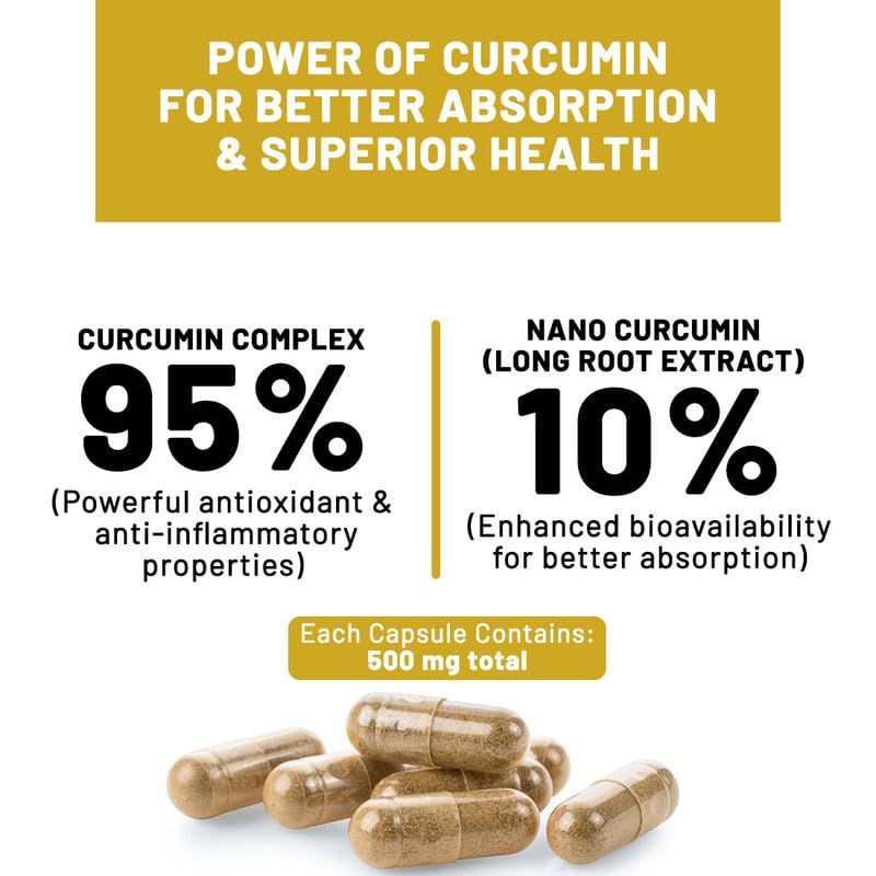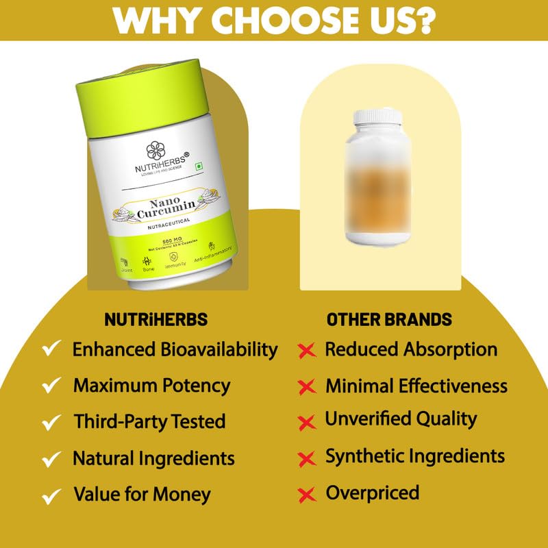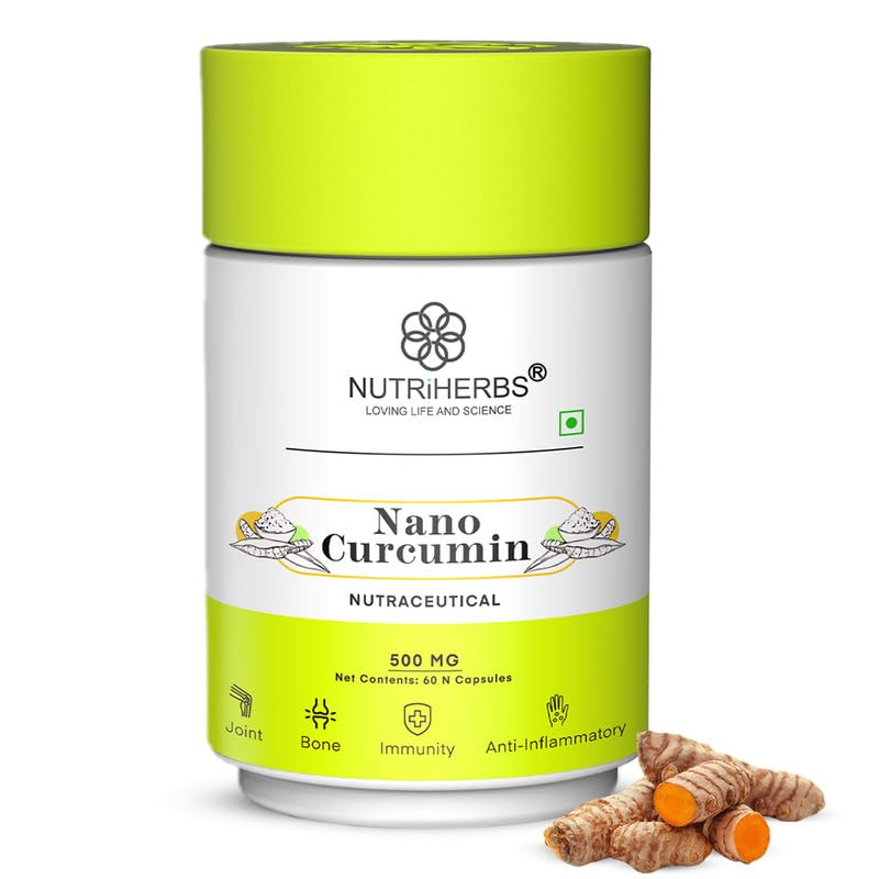 NUTRiHERBS Nano Curcumin 500mg Capsules | Immunity Booster for Men & Women | Joint Pain Relief & Digestion Support | Turmeric Curcumin with Piperine for Better Absorption | 60 Capsules