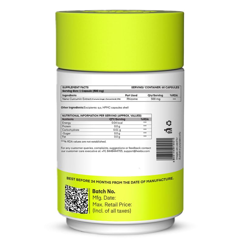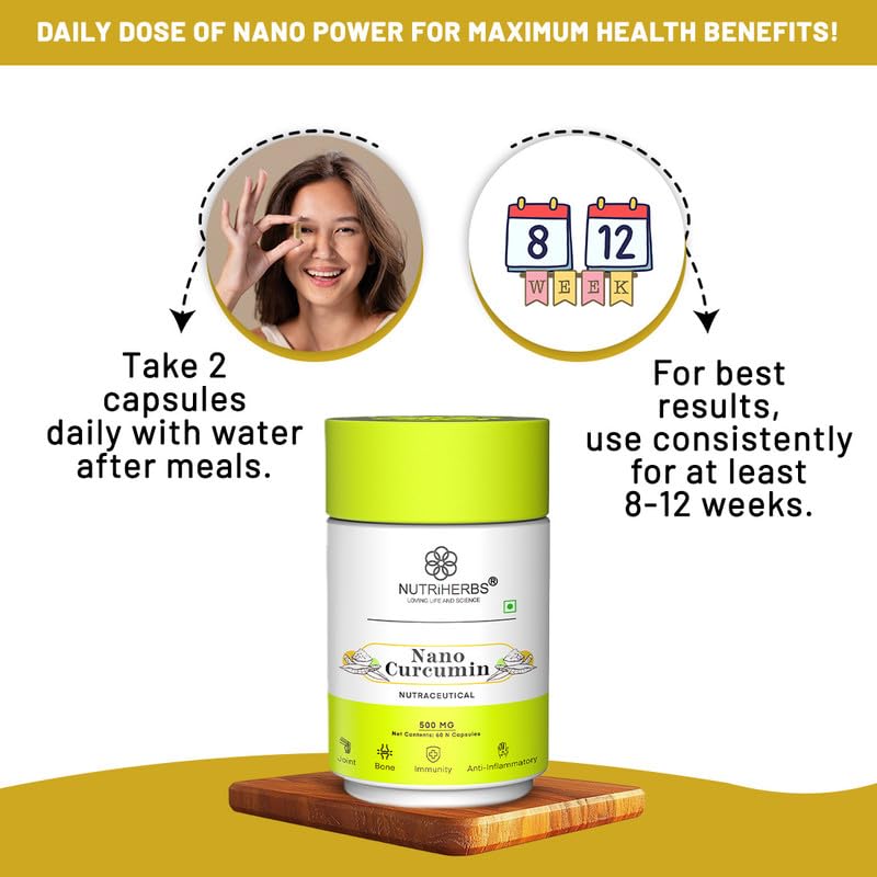 Nutriherbs Nano Curcumin capsules are made in India & free from chemicals and fillers. These capsules should be consumed twice daily for best results. These immunity boosting capsules are organic highly effective & may contribute towards a better lifestyl