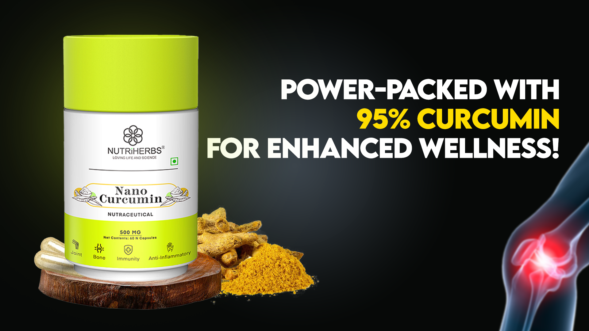 Nutriherbs Nano curcumin capsules may strengthen the immune system and enhance bodyâs capacity to minimize the risk of frequent sickness. Haldi capsules may help in soothing stiffness of joints and may improve symptoms of joint disorders. Haldi capsules