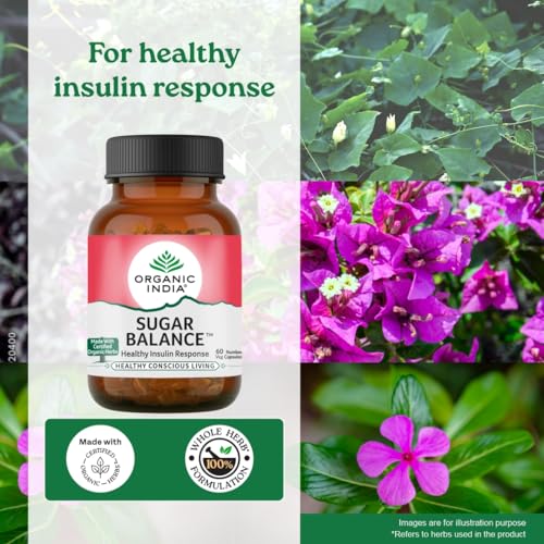 A TATA Product - Organic India Sugar Balance - 60 Veg Capsules, Naturally Supports Healthy Insulin Response & Glycemic Control, Normalize Energy Levels & Metabolism, GMP & NPOP Certified Organic