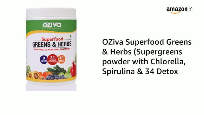 DETOX & DIGESTION: OZiva Superfood Greens & Herbs is a vegan herbs and daily greens supplement that contains herbs like Amla Triphala and Manjistha that improve bowel movement and detoxify by flushing out waste.
