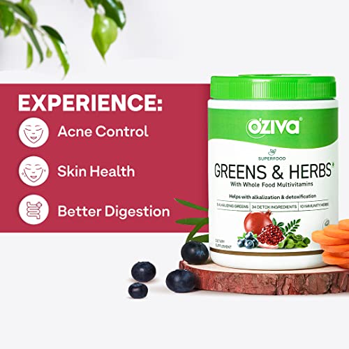OZIVA Superfood Greens & Herbs Powder | 0.55 Lb (250 gm) | with Chlorella, Curcumin, Spirulina, Maca, Moringa & More for Cleanse, Detox & Energy, Vegan & Keto Friendly (8.81 oz)