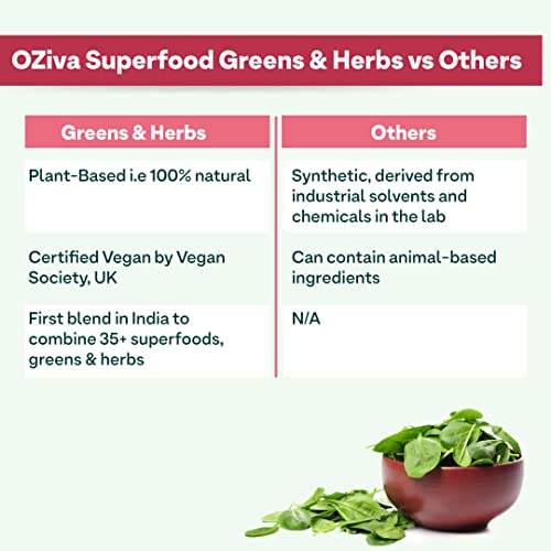HAR TARAH SE BETTER WITH PLANT-BASED DAILY GREENS: OZiva Superfood Greens & Herbs is a soy-free and gluten-free daily greens that contains no added sugar or artificial sweeteners making it absolutely safe for long-term consumption. It is 100% natural and