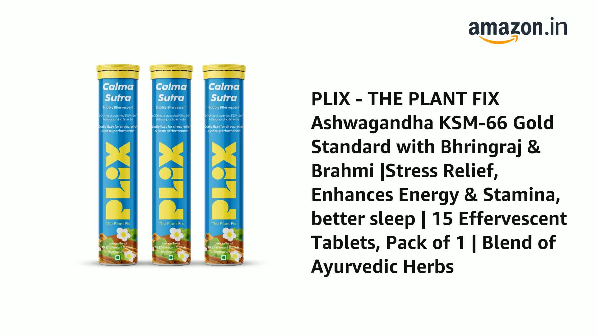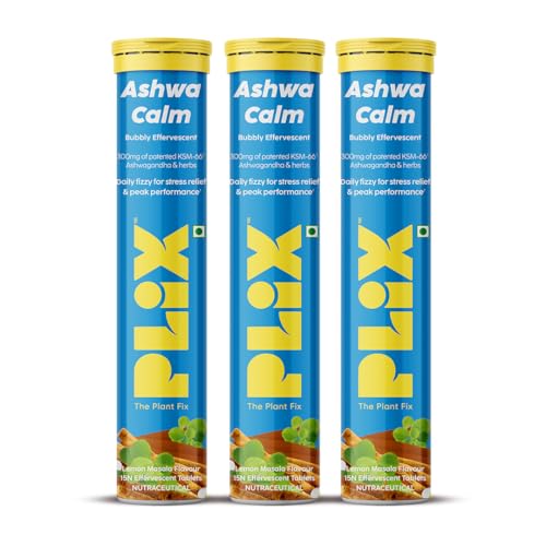 PLIX- THE PLANT FIX | KSM-66 Ashwagandha Gold Standard Effervescent (300 mg) | Brahmi & Bhringraj helps relieve stress & boosts performance| Promotes Calmness, Increase Mental Acuity, & Muscle Recovery (45 Tabs) (Pack of 3)