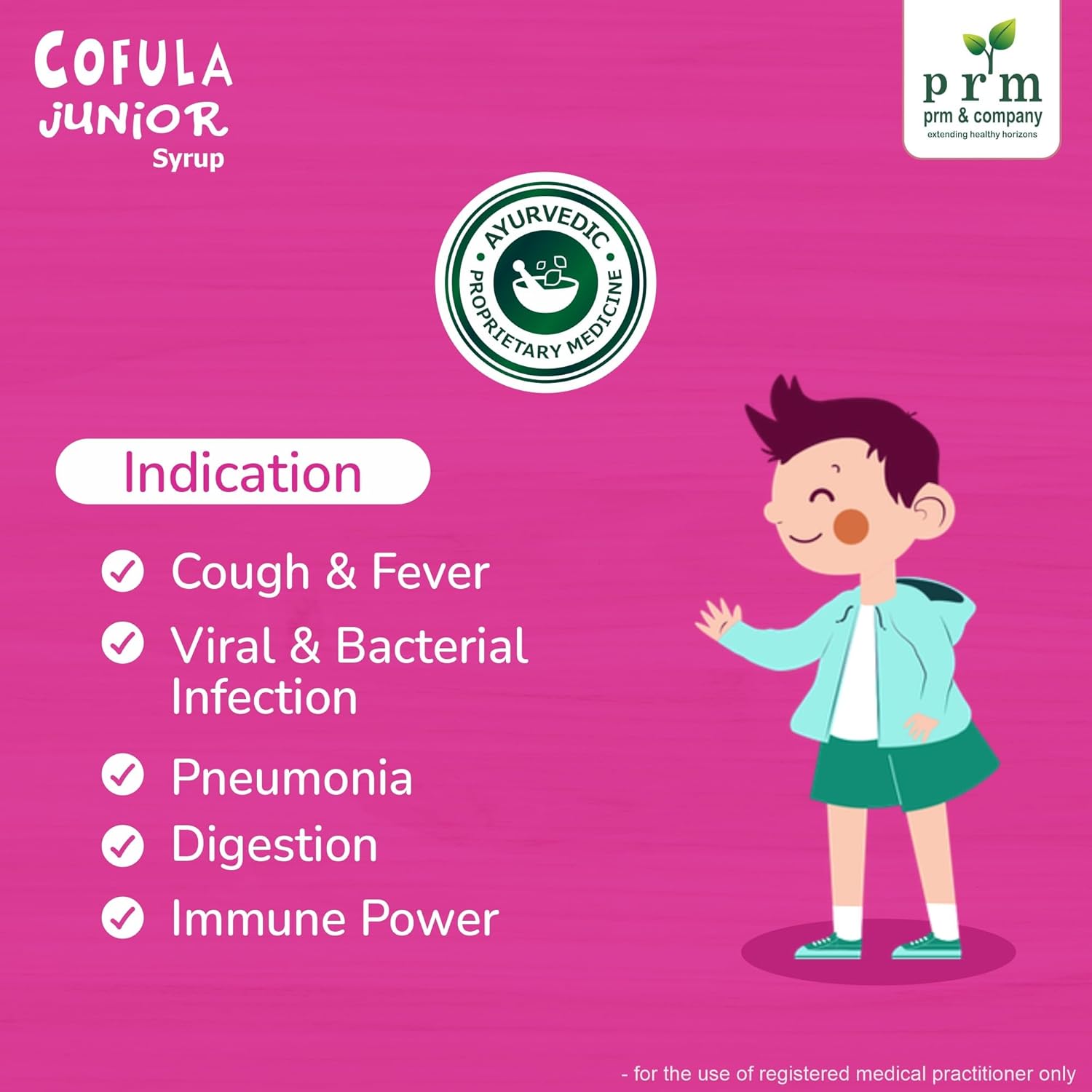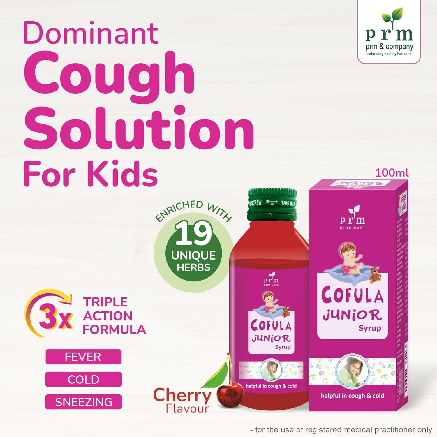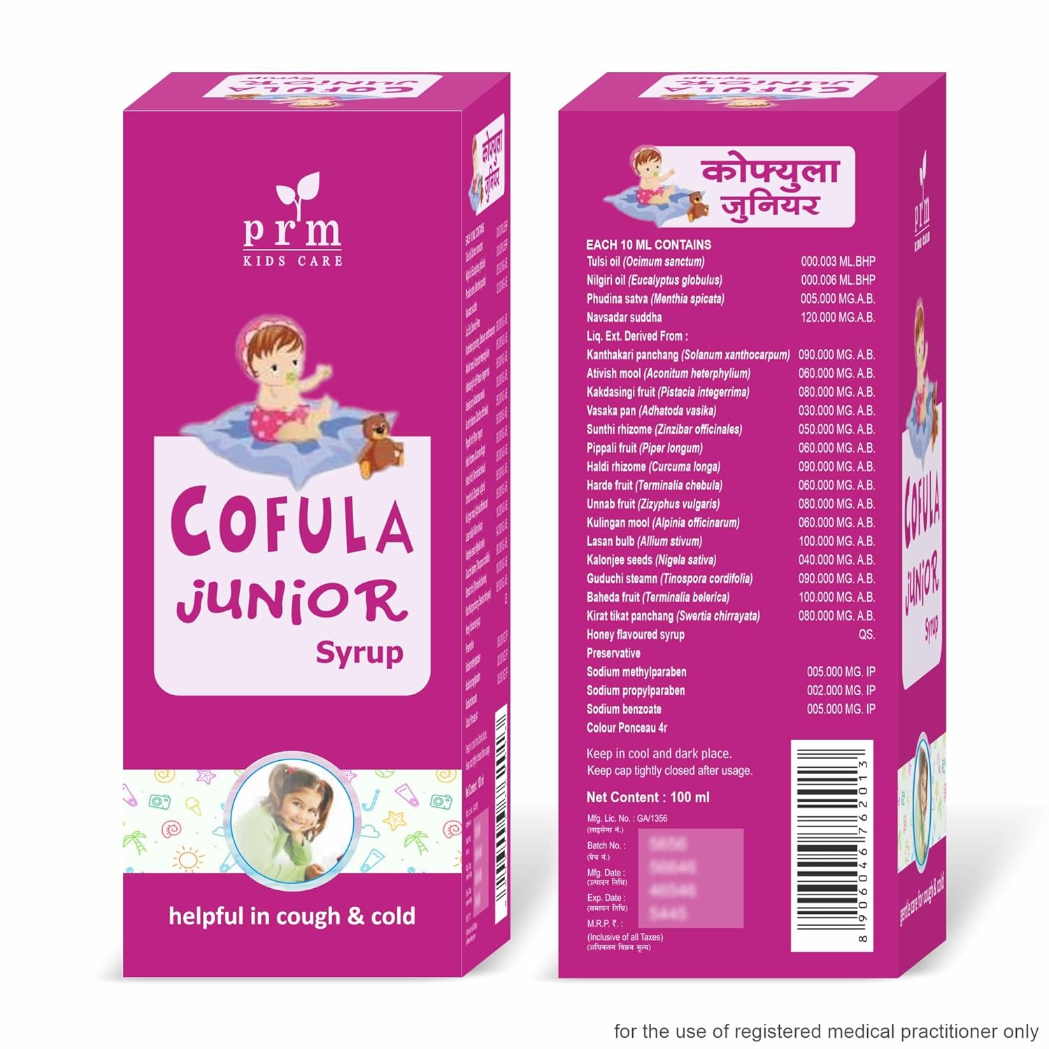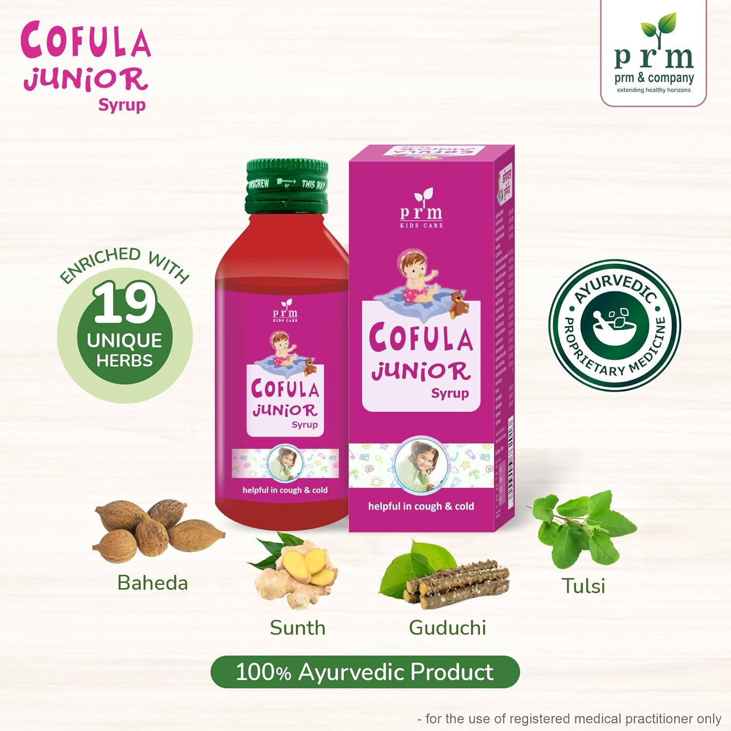 PRM Cofula Junior Herbal Syrup 100ml (Pack of 2) Gentle Cough & Cold Relief for Kids with Nilgiri Oil, Tulsi Oil & Ativish Mool