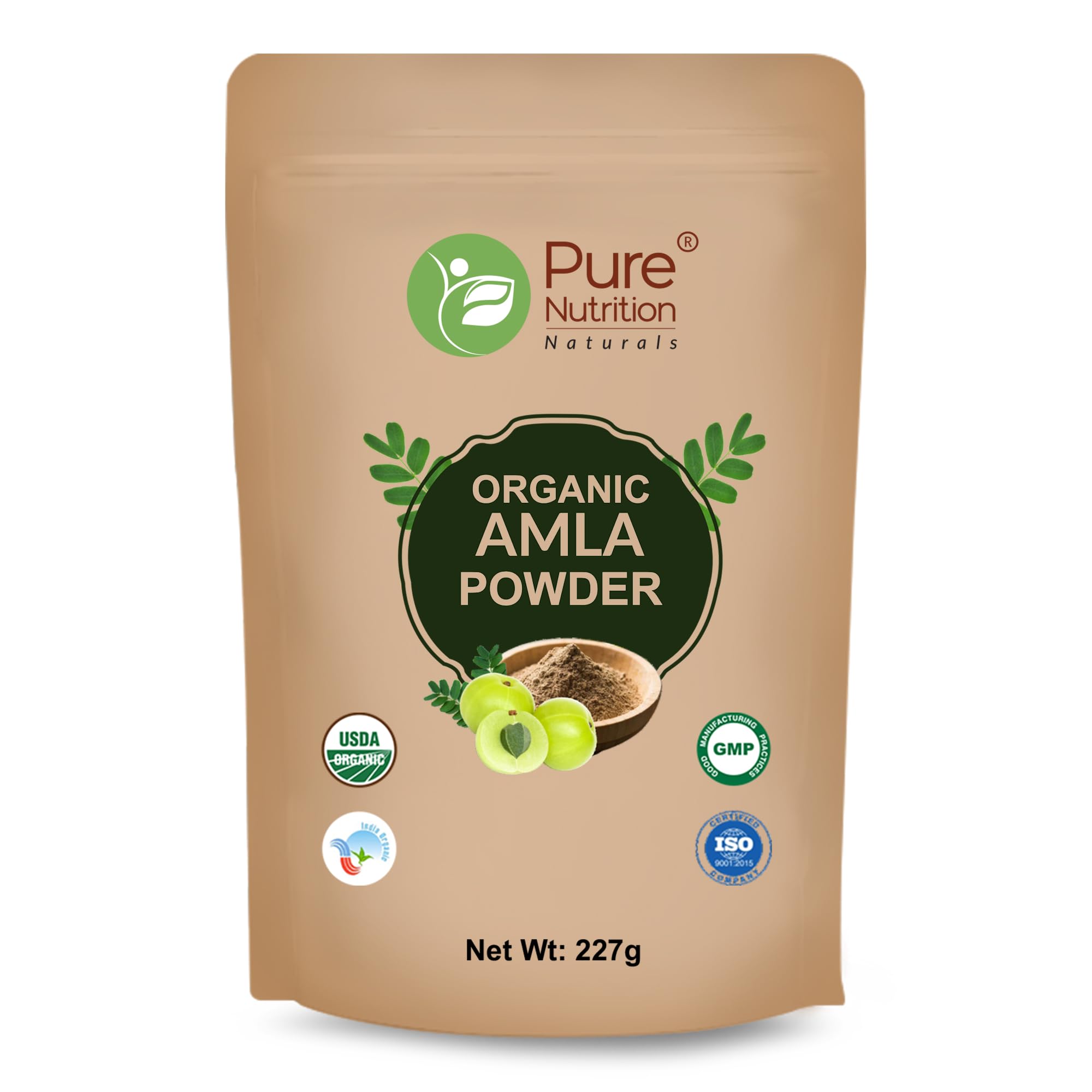 Pure Nutrition Organic Amla Indian Gooseberry Powder (Emblica Officinalis) Rich In Vitamin C Calcium & Iron | Boosts Immunity | Natural Blood Purifier | Supports Skin & Hair Health | Edible Quality | USDA Organic - 227g