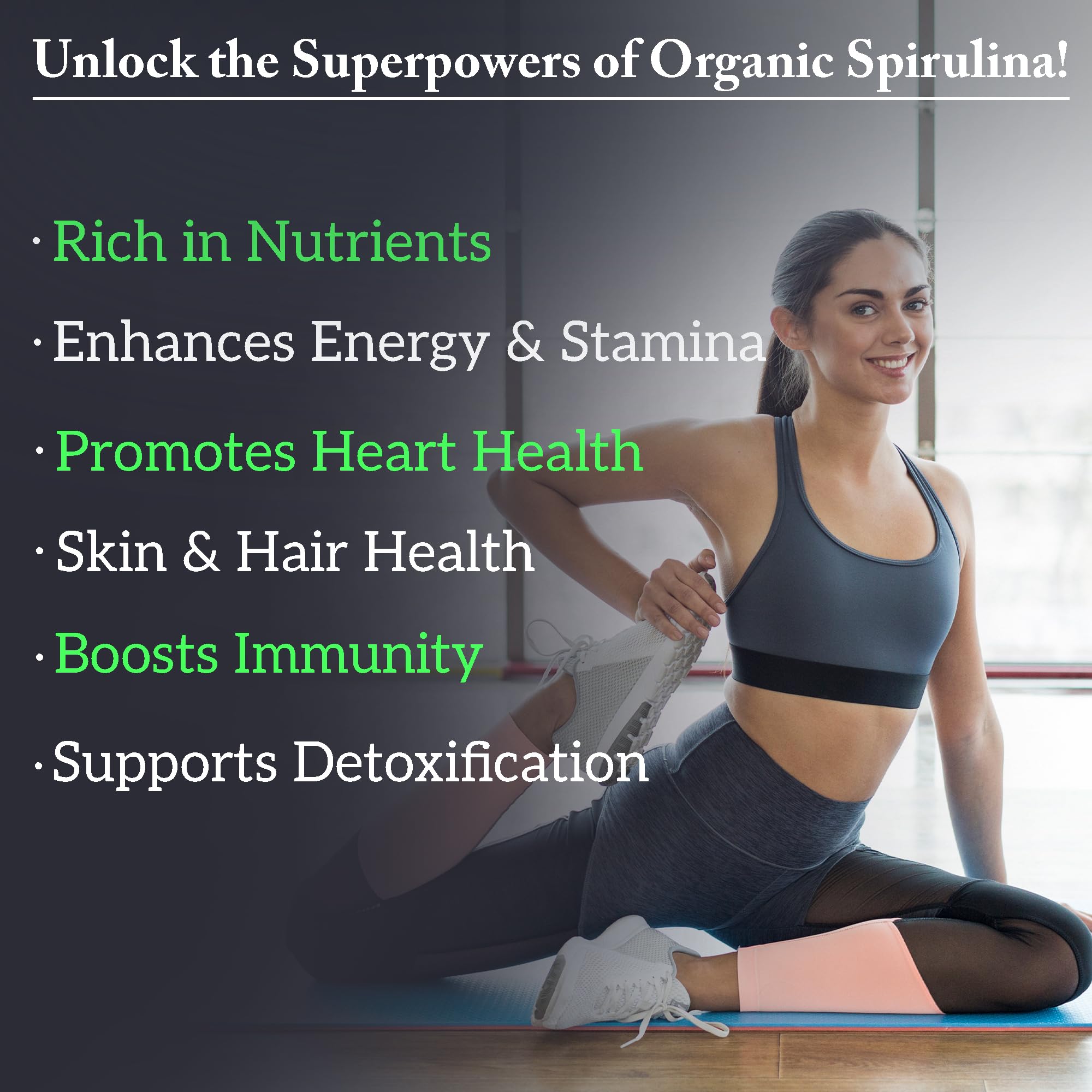 Pure Nutrition Organic Spirulina - 180 Veg Tablets | Supports Healthy Skin Brain & Heart Function | Natural Superfood for Energy & Immune Support | Aids in Weight Management & Detox | Nutrient-Rich Daily Supplement