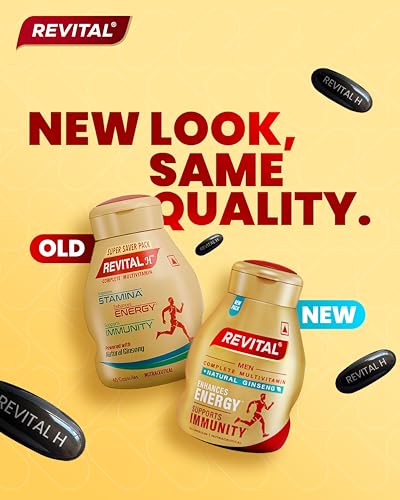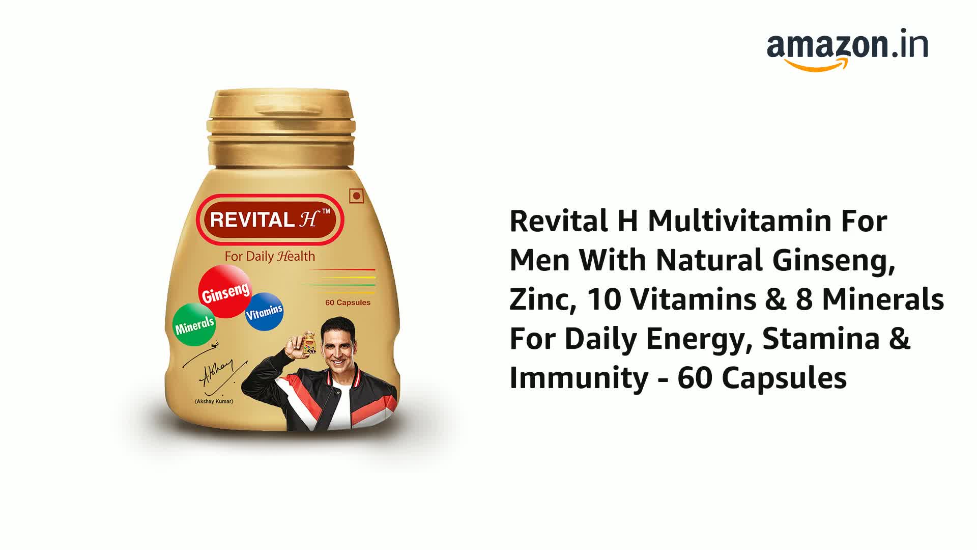Revital H Multivitamin For Men (60 Capsules) With Natural Ginseng, Zinc, 10 Vitamins & 8 Minerals For Daily Energy, Stamina & Immunity