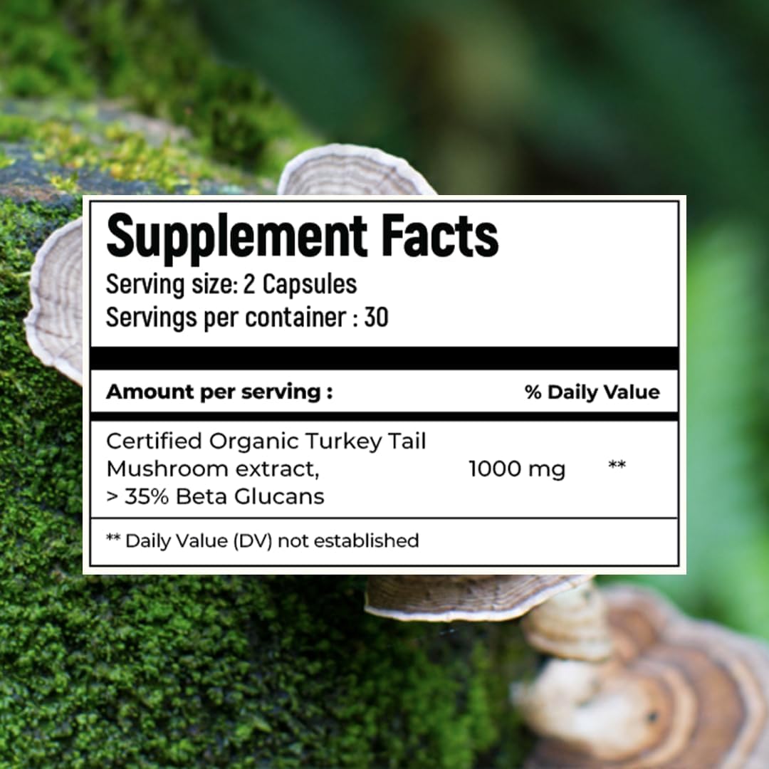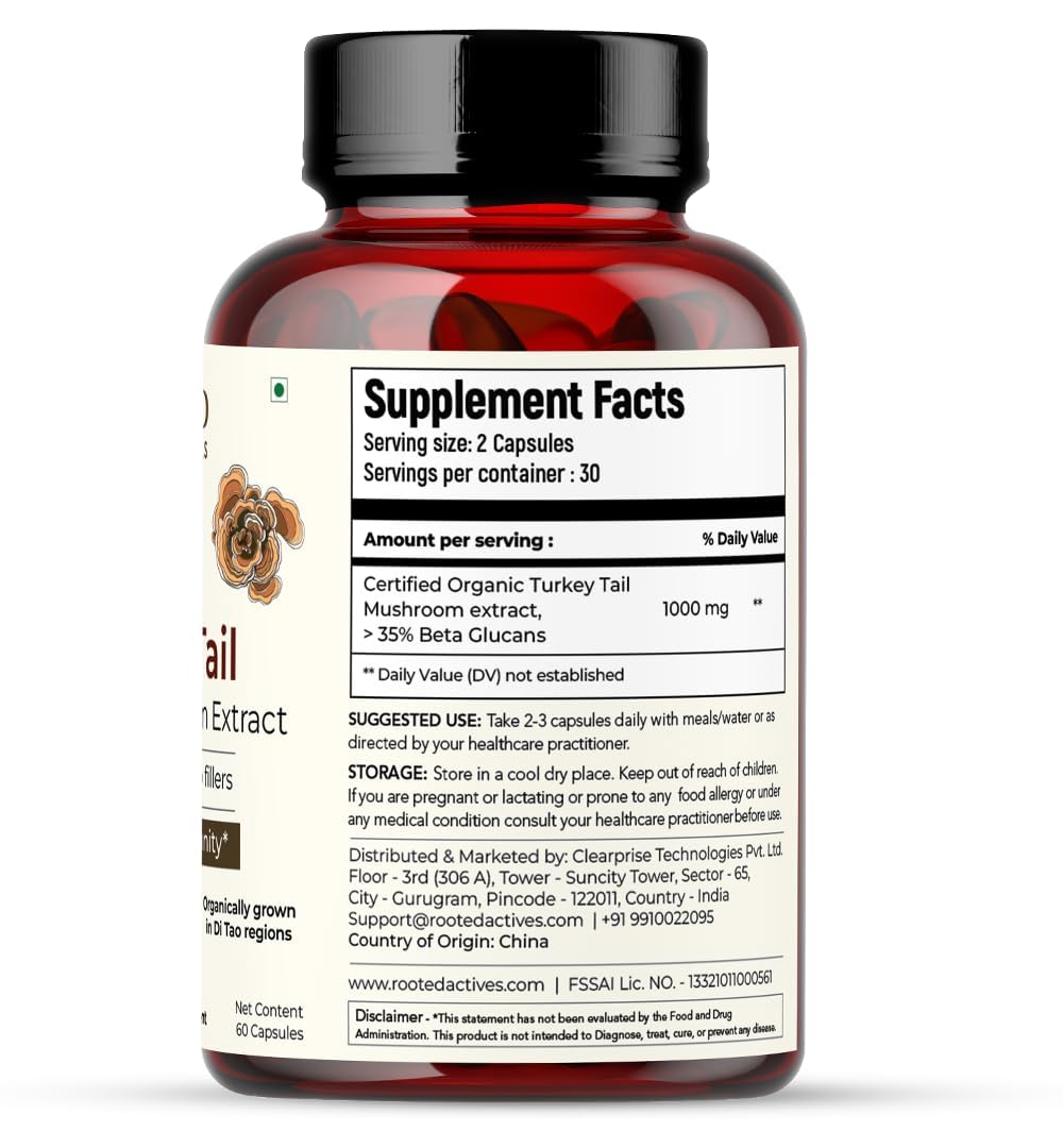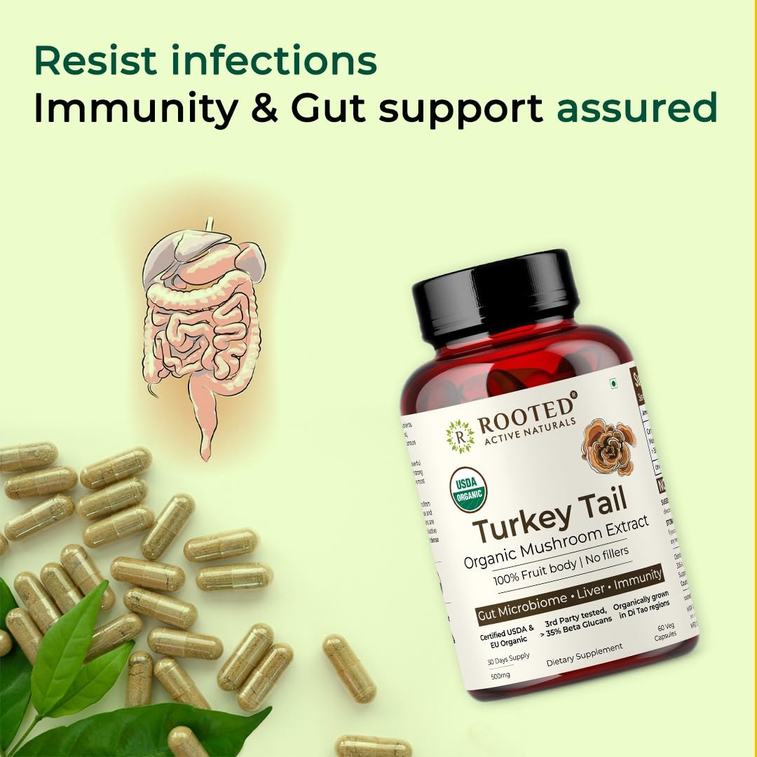 Rooted Active's Turkey Tail Mushroom Capsules | Whole Mushroom Powder | No Fillers or Additives | Non-GMO Vegan & Gluten-Free | Convenient Daily Supplement | Pack of 4 | 60 Caps
