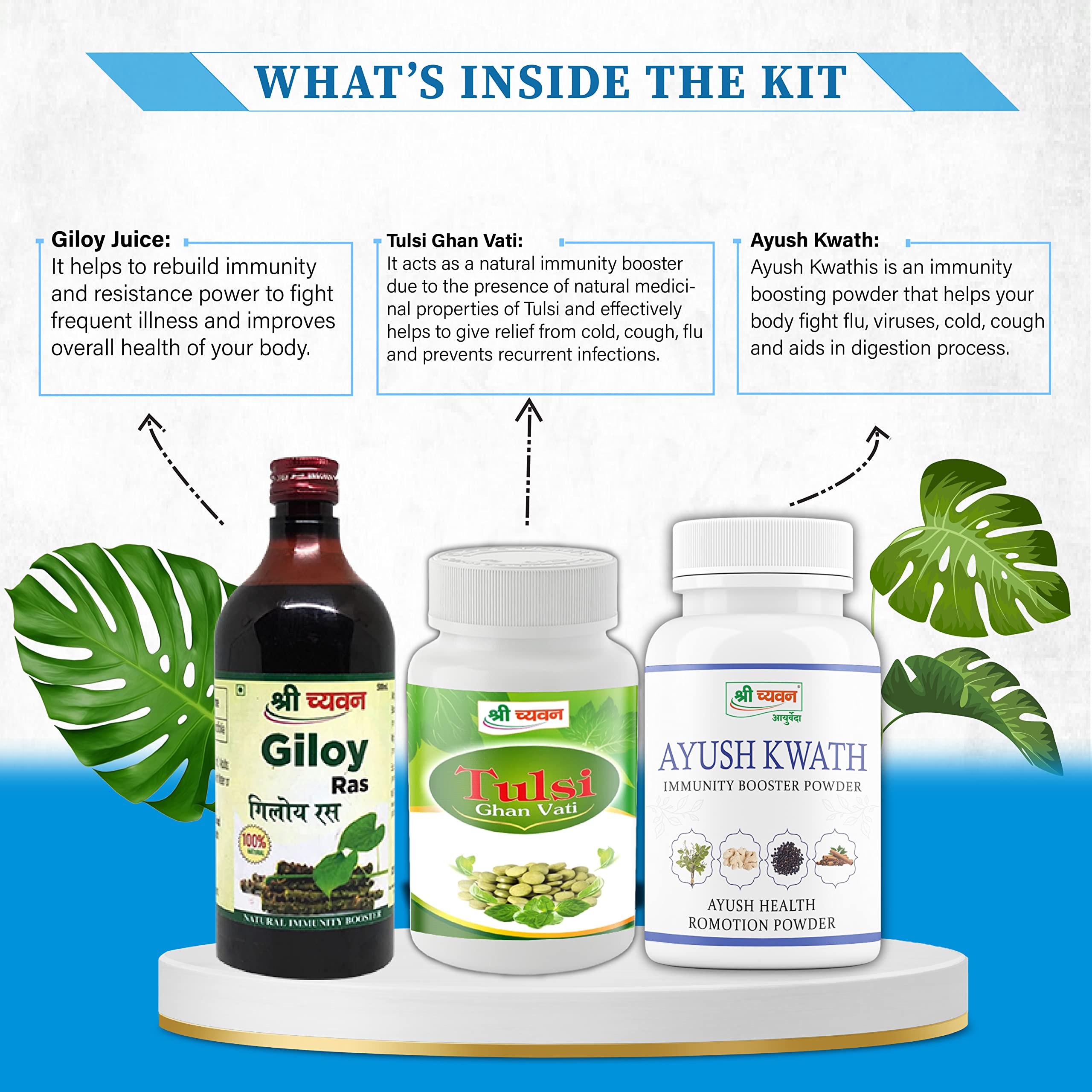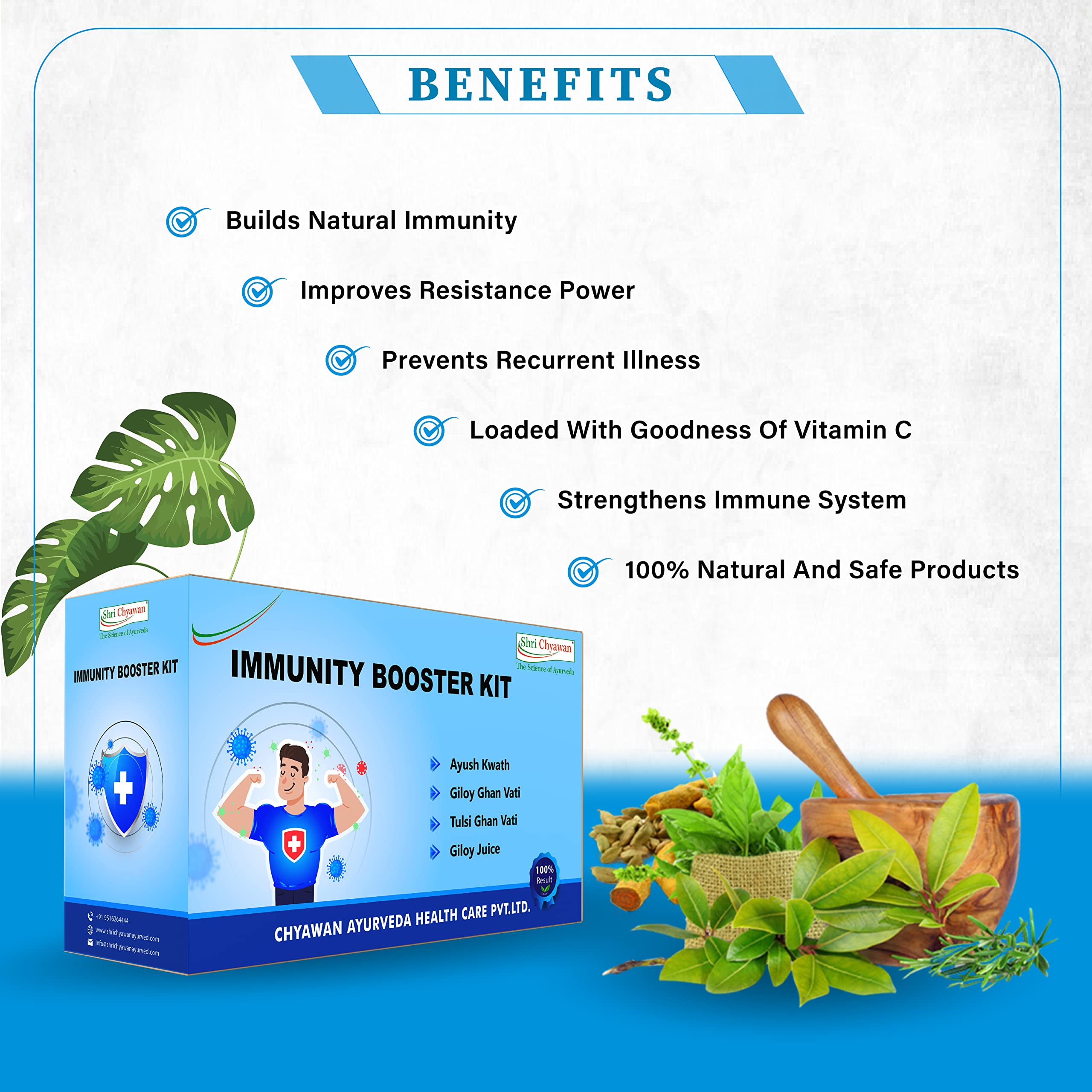 Boosts Immunity: Shri Chyawan Ayurveda's Immunity Booster Kit acts as a Natural Immunity Boosting Powder that helps fight frequent illness and infections.