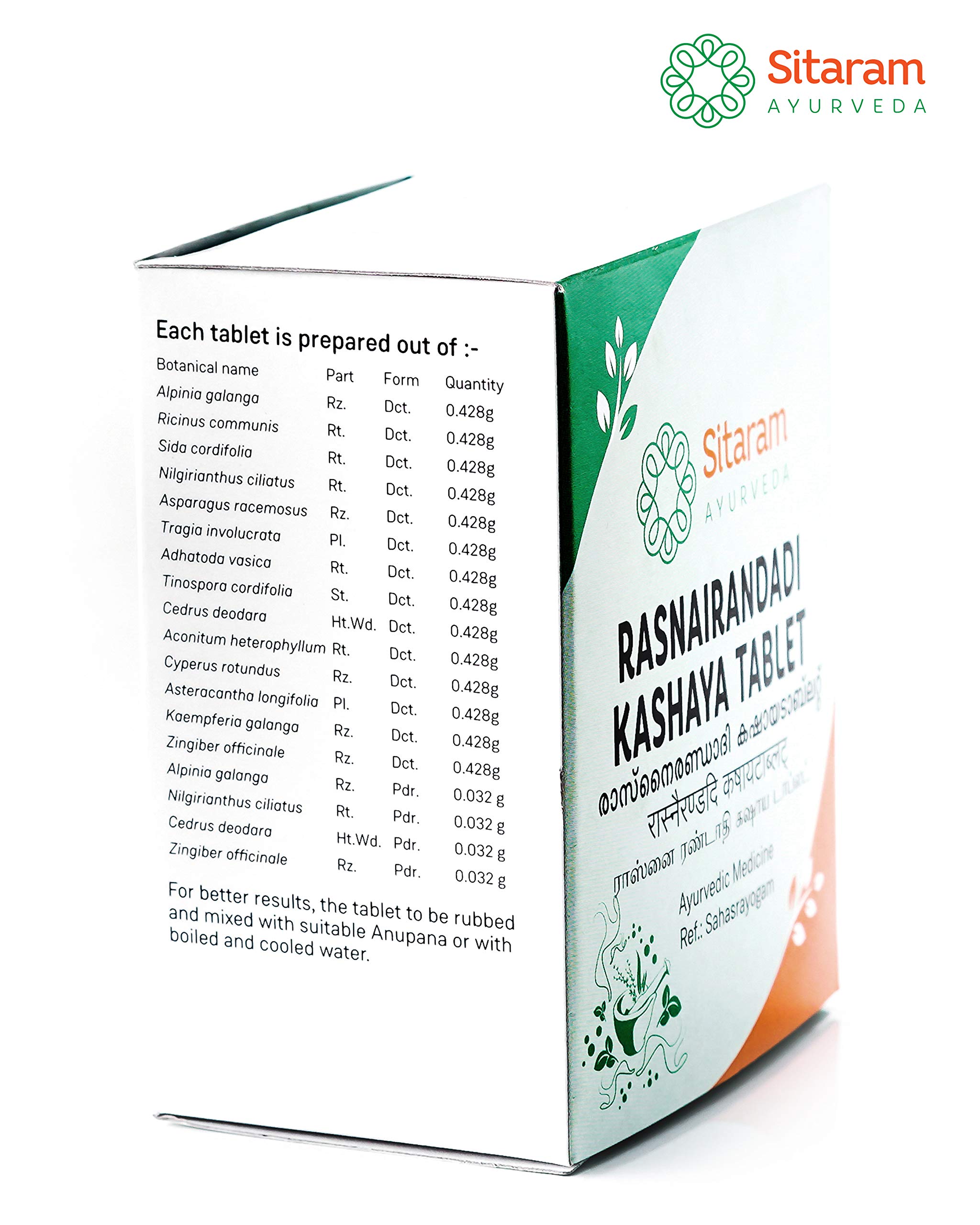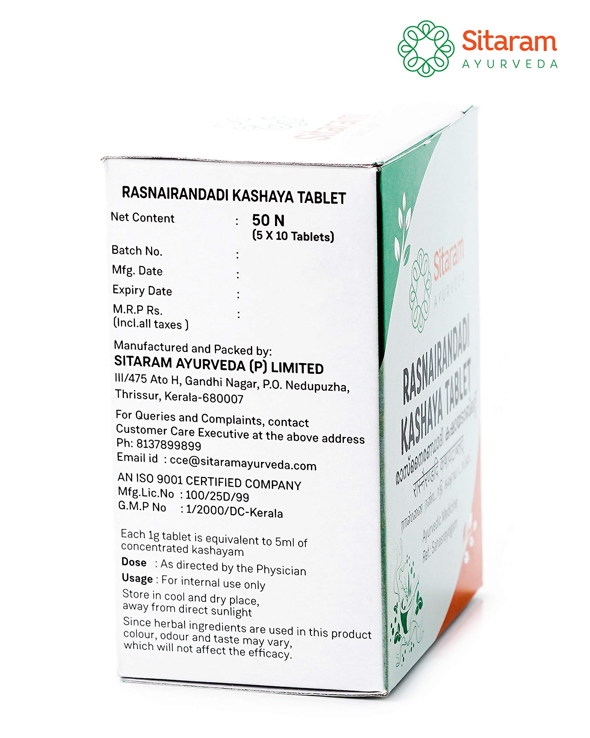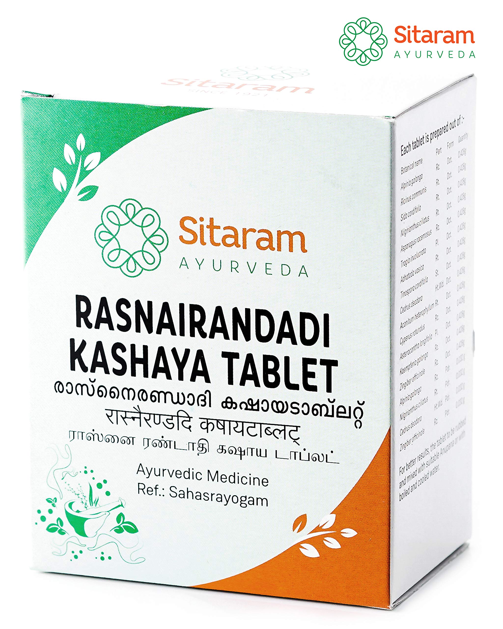 HomeHealth & PersonalDiet & NutritionHealth SupplementsSitaram Ayurveda Rasnerandadi Kashaya Tablet 50 Nos Ayurvedic Tablet for Joint Health and Stability effective in Gouty and Degenerative Arthritis Low Back Ache Chronic Inflammatory Conditions