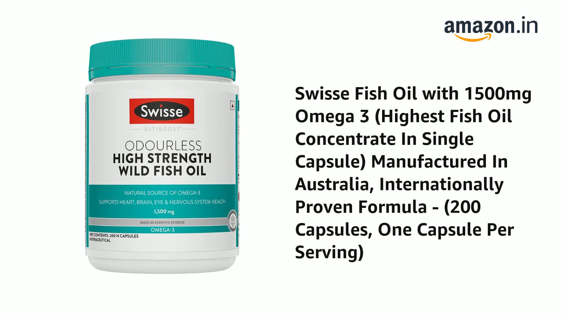 HomeHealth & PersonalDiet & NutritionHealth SupplementsSwisse Fish Oil with 1500mg Omega 3 (Highest Concentrate In Single Capsule) Manufactured In Australia, Internationally Proven Formula - (200 Capsules, One Capsule Per Serving)
