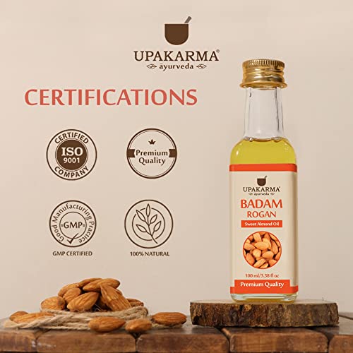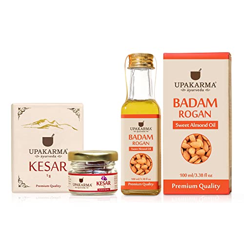 Upakarma Ayurveda Pure Sweet Almond / Badam Rogan Oil 100 ml and 1 Gram Kashmir Kesar / Saffron Combo