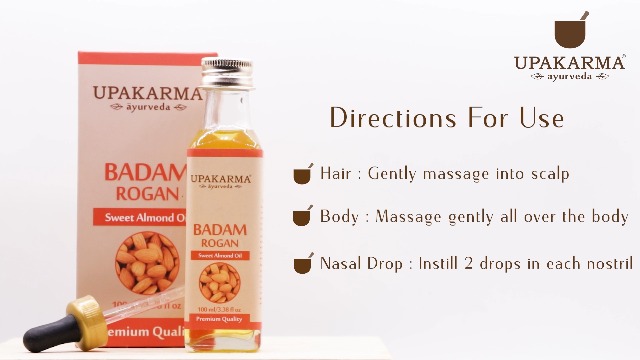 Upakarma Badam Rogan Oil is clean light and won't clog pores. It glides on easily leaving skin smooth and glowing never greasy