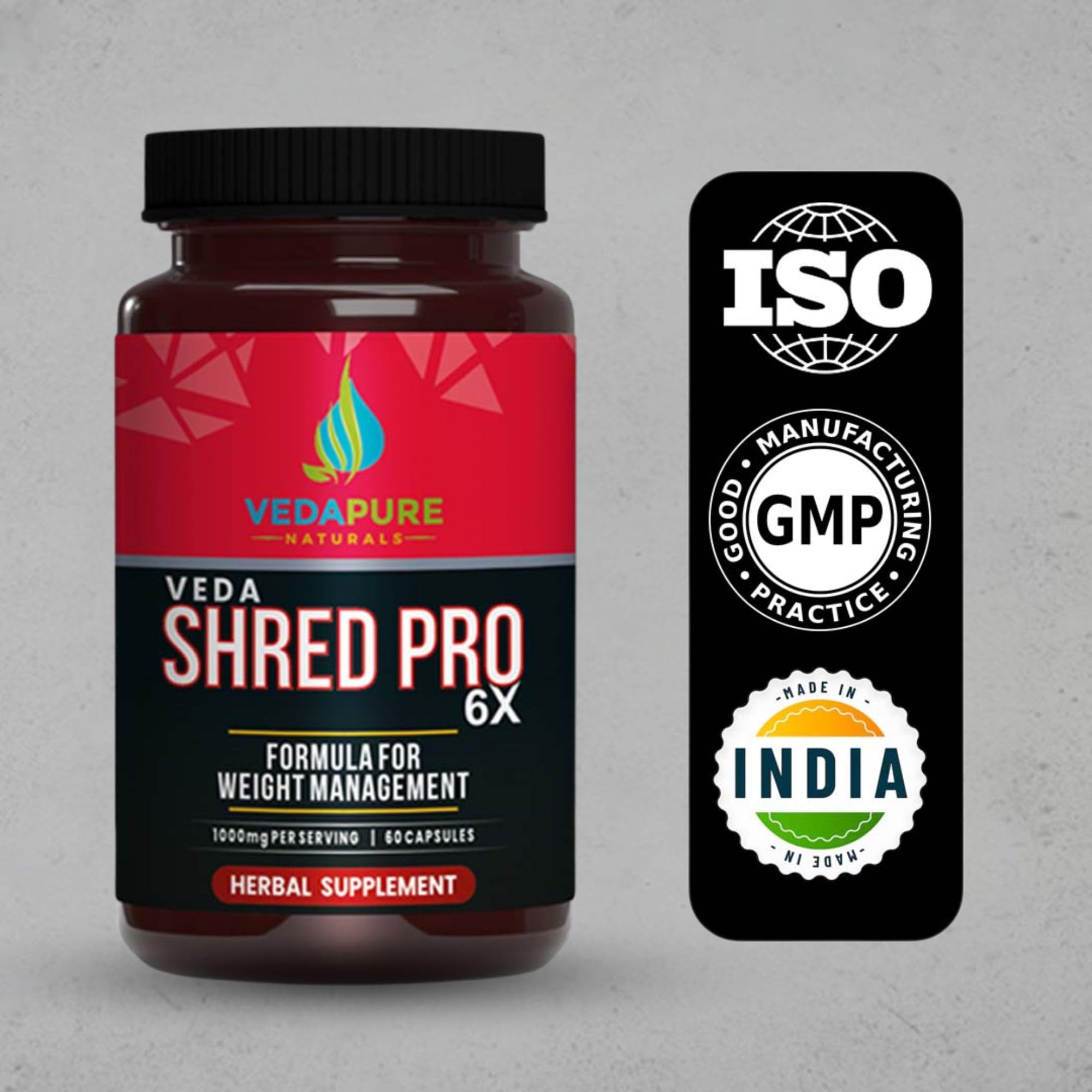 HomeHealth & PersonalDiet & NutritionHealth SupplementsVedapure Shred Pro 6x - 60 Capsules (1000mg) | Supports Weight Management for Men and Women | Boost Metabolism and Immunity | Helps in Improving Digestion (Pack of 2)