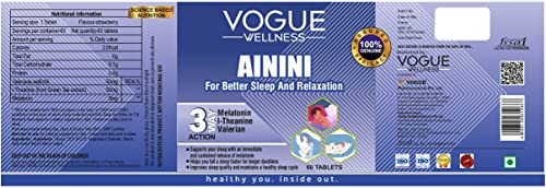 Vogue Wellness AININI Better Sleep & Relaxation Tabs. - 3 Way Action- Melatonin I-Theanine & Valerian Melatonin is naturally generated in our body to provide restful sleep after sunset the darkness signto our brain to produce melatonin for sleep.