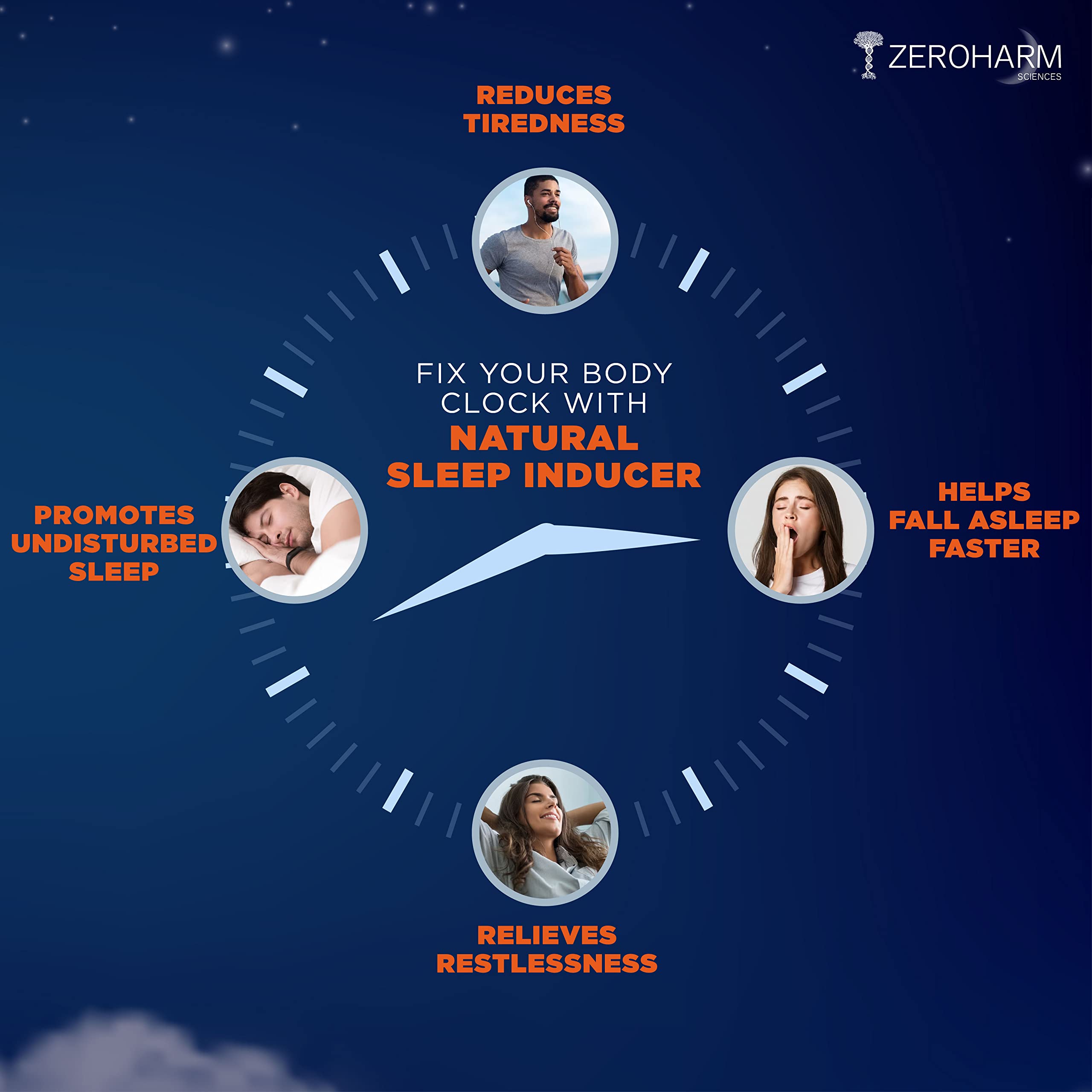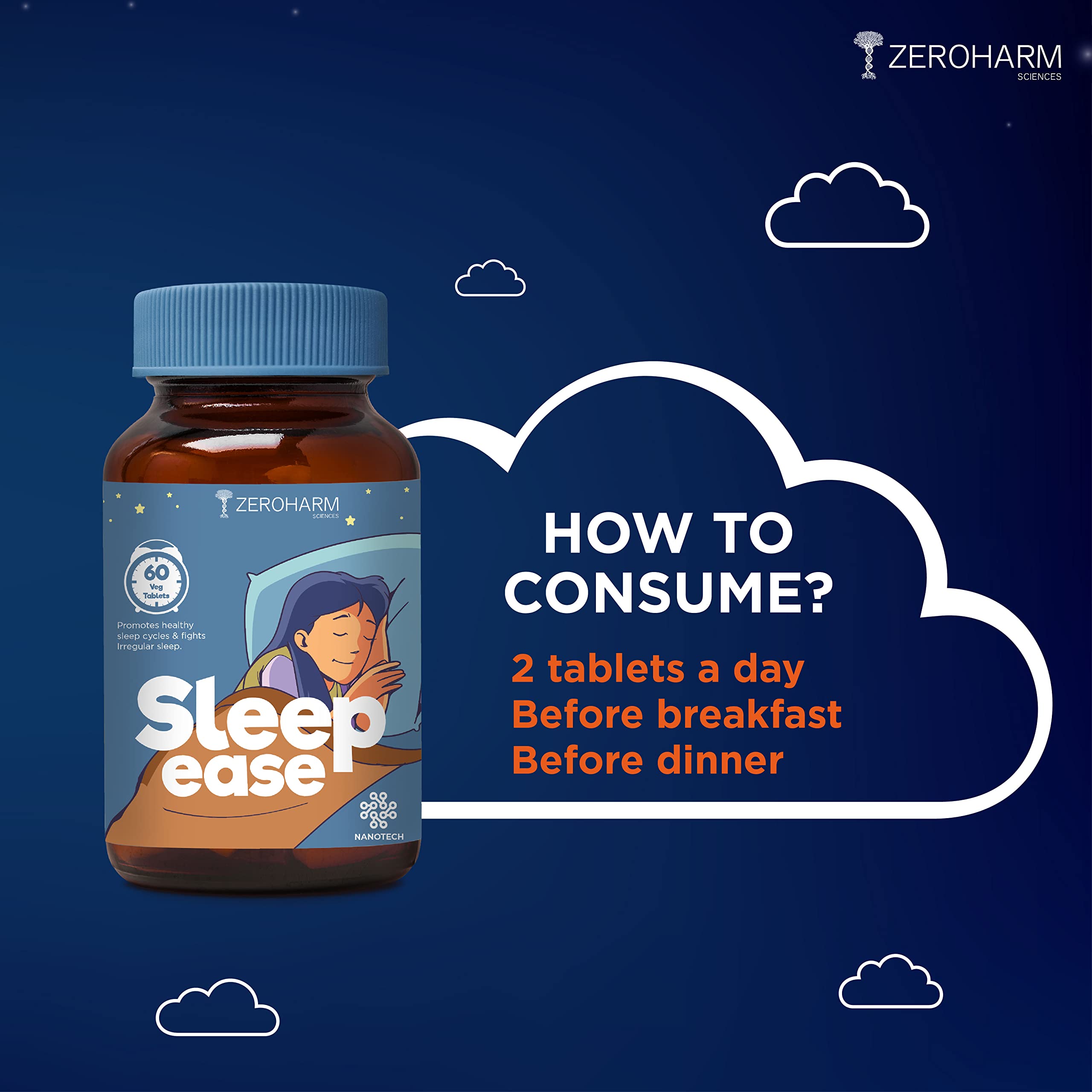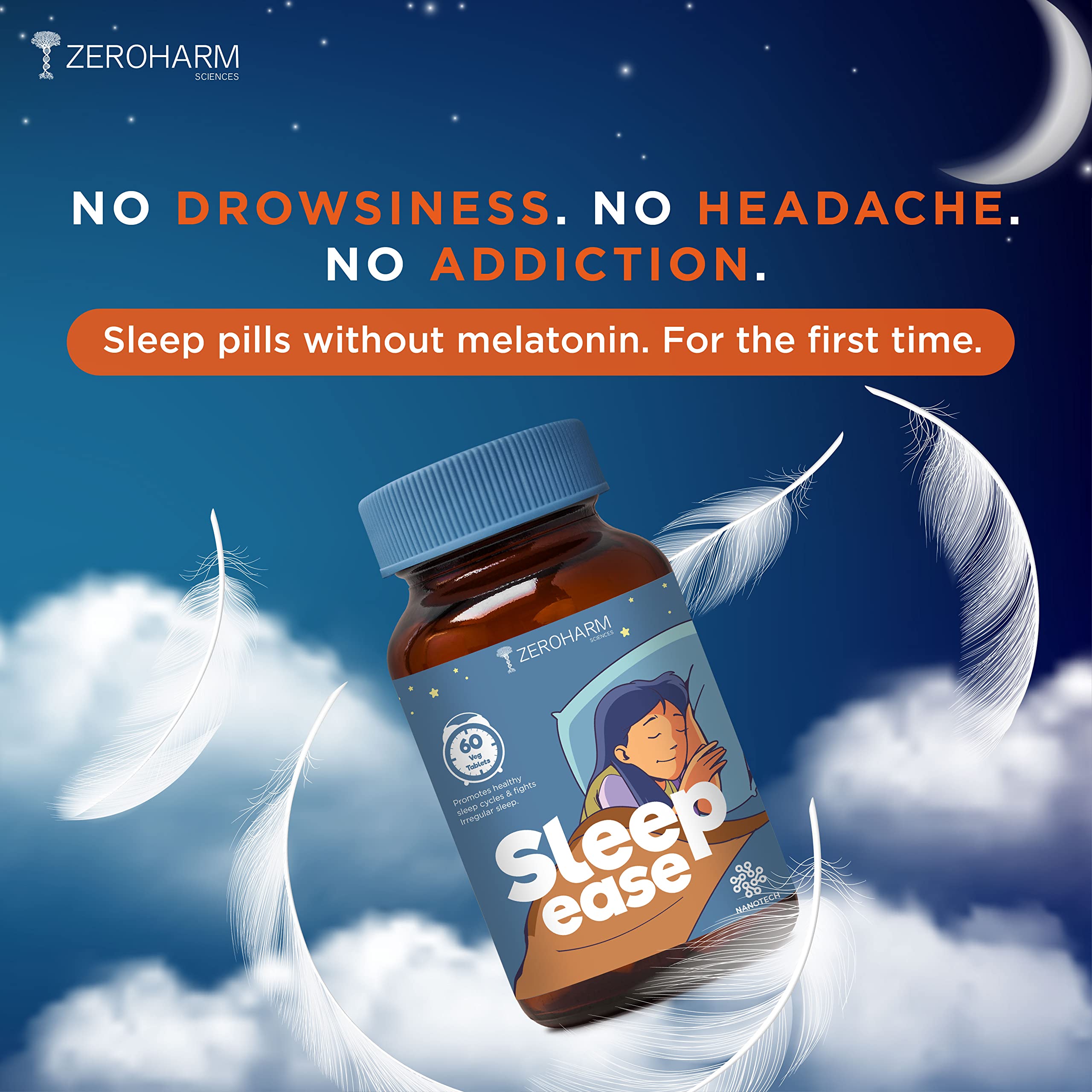 NATURAL SLEEP INDUCER Unlike regular sleeping pills Sleep Ease by ZeroHarm promotes sustainable sleep by normalizing the sleep-wake cycle and fixing the body clock.