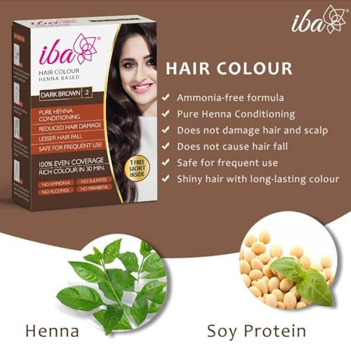 HomeHealth & PersonalHair CareNatural Hair ColorIba Hair Colour for Women - Dark Brown, 70g (Pack of 2) | 100% Pure Henna Based Powder Sachet | Natural Hair Colour & Long Lasting with Conditioning Formula| Reduced Hair Fall & Hair Damage | Shine & Nourish Hair | Free from Ammonia and Other Harmful Chem