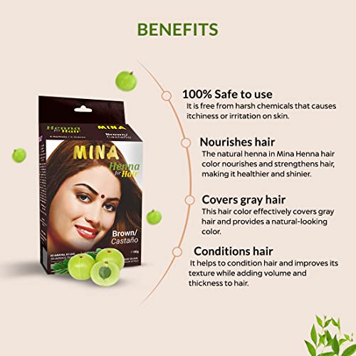 Natural and nourishing: Mina Henna hair colour is made with potent ingredients like Bhringraj powder amla powder and shikakai which nourish and strengthen your hair while adding beautiful color.
