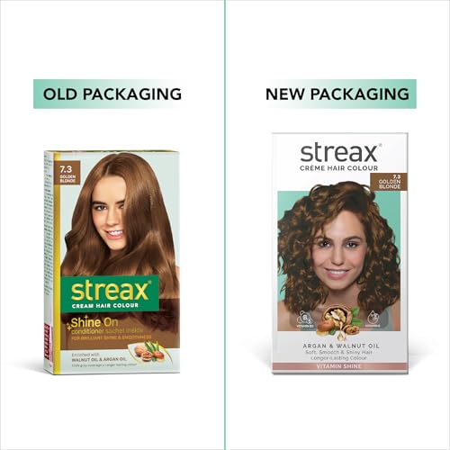Streax Permanent Hair Colour, 100% Grey coverage, Infused with Argan and Walnut Oil, Long Lasting Cream Hair Colour for Women, Blonde hair Colour, 7.3 Golden Blonde, 120 ml, Pack of 1