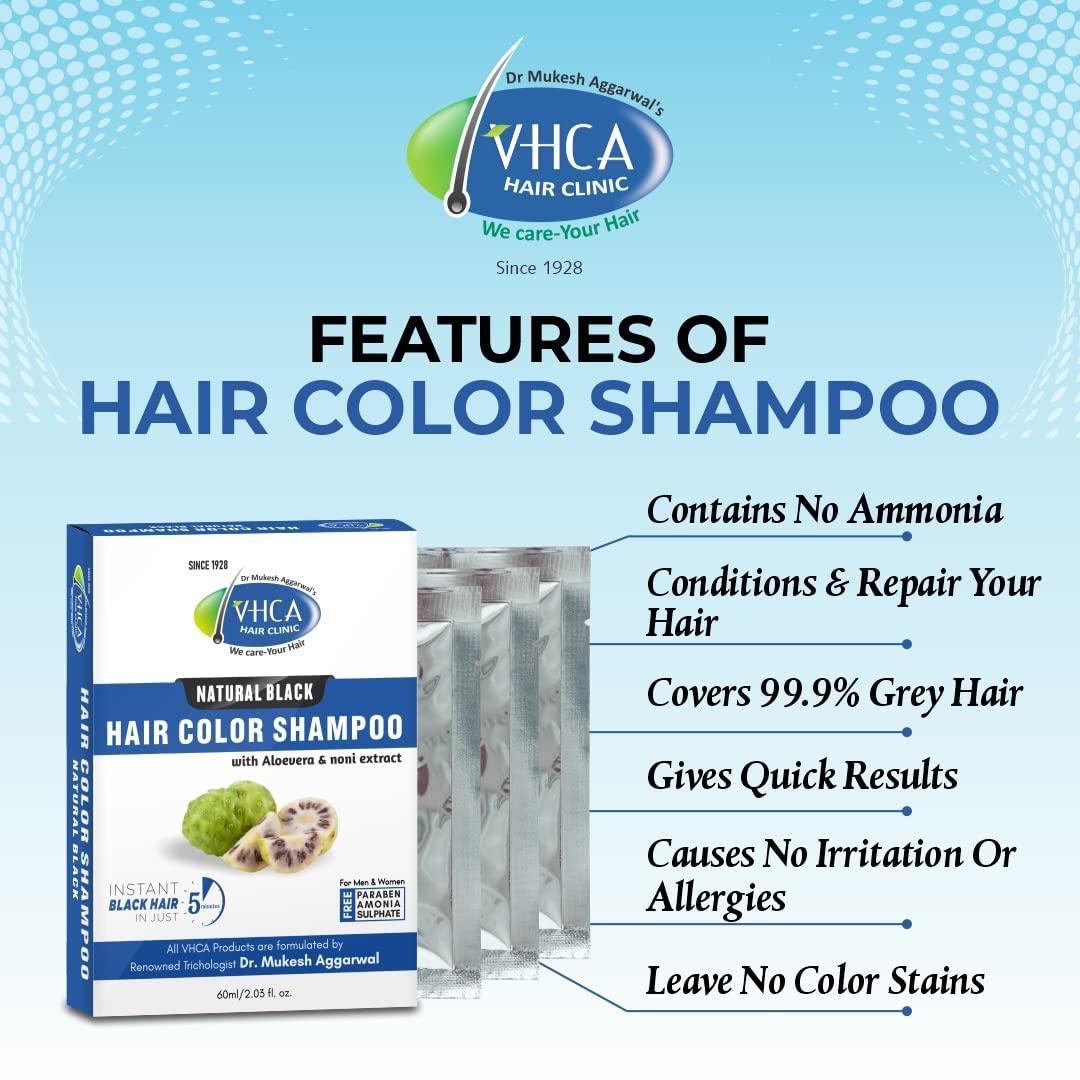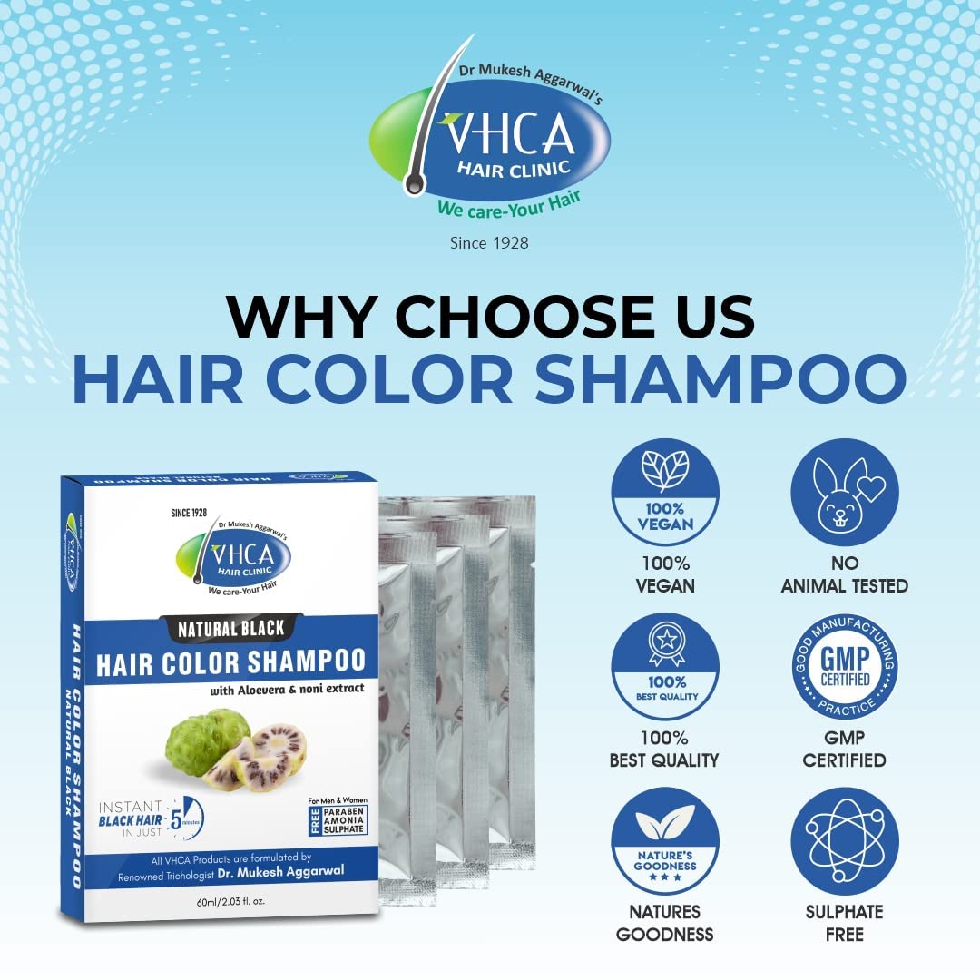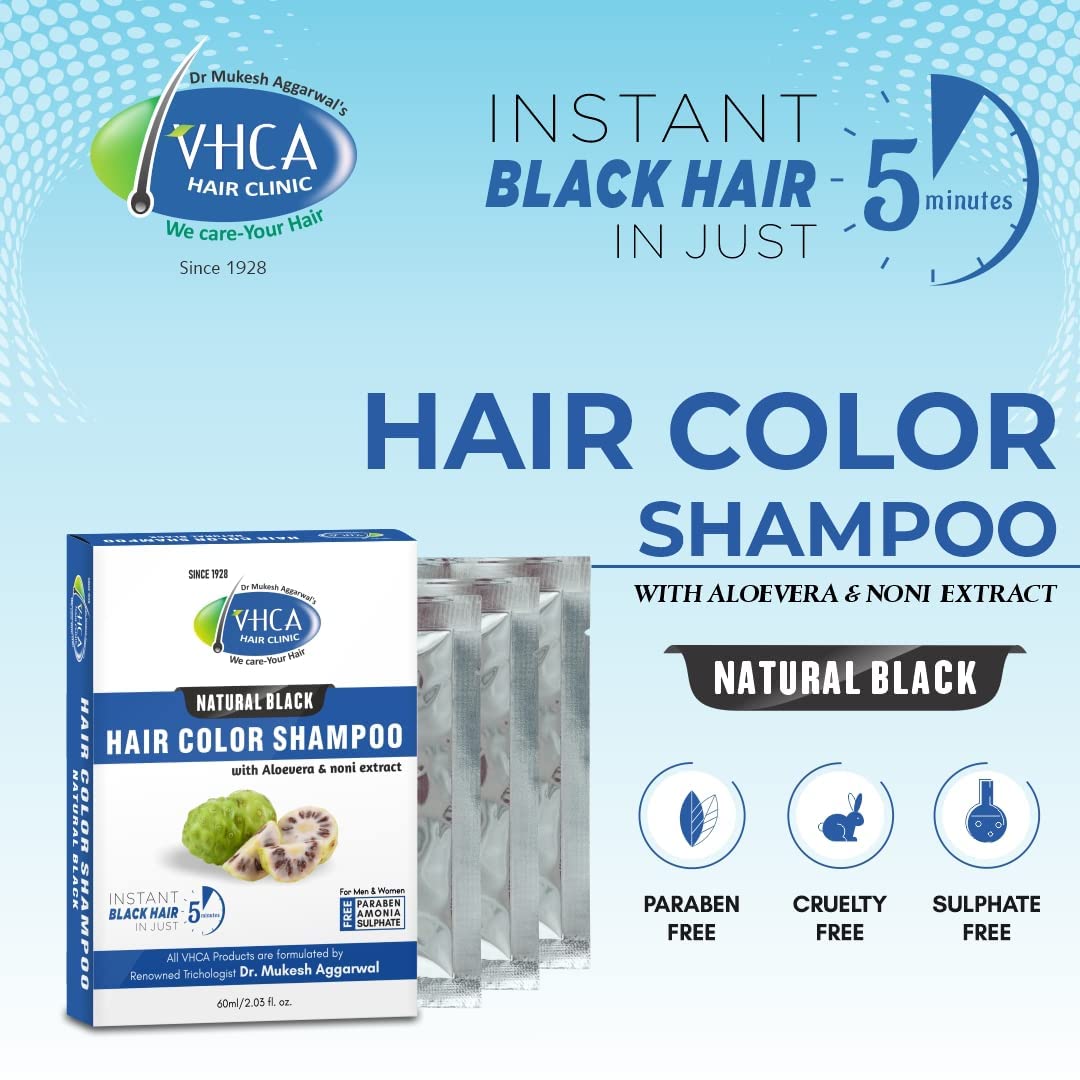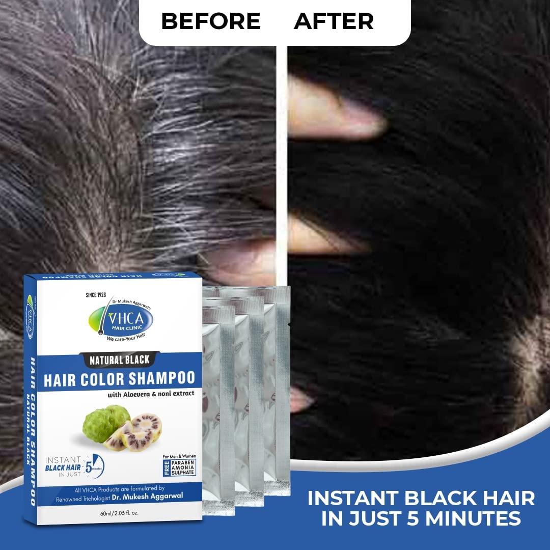 HomeHealth & PersonalHair CareNatural Hair ColorVHCA Beard Color Shampoo For Men Black Beard Color Shampoo Black Natural Hair Color Shampoo Black Noni Black Beard Hair Magic Shampoo (20ml X 3 Sachet) (Black)