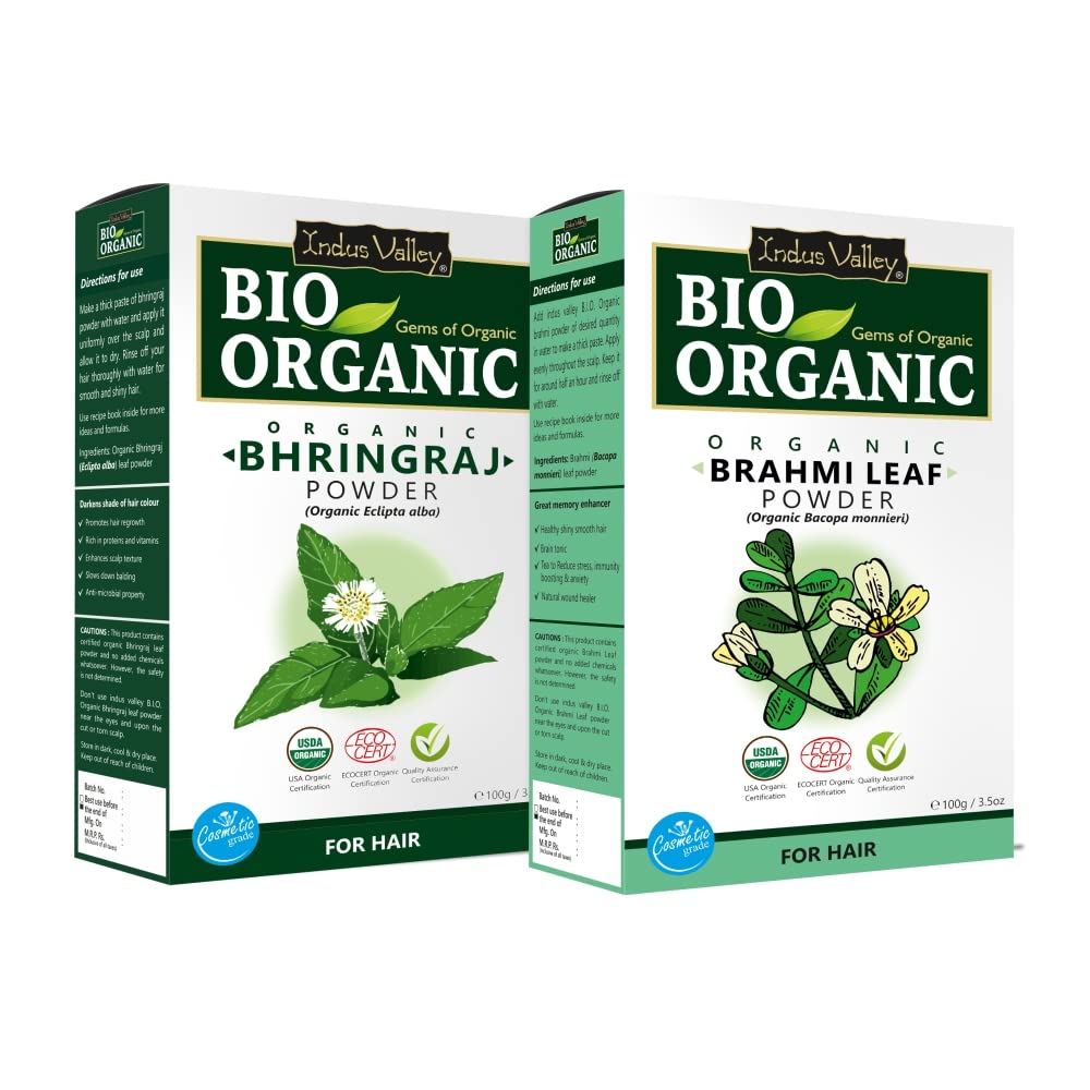 HomeHealth & PersonalHair CareHair MasksINDUS VALLEY Bio Organic Natural Brahmi Powder | Bacopa monnieri With Bhringraj Powder | Eclipta alba for Hair Care - (100g*2=200g)