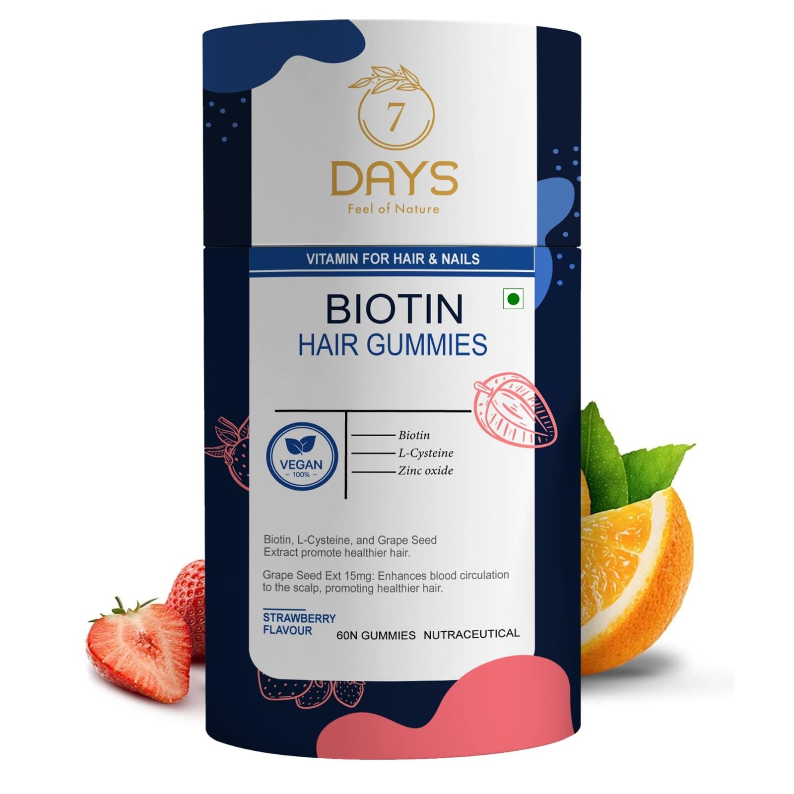 7DAYSNATURAL Biotin Hair Gummies | Biotin With Vitamin A C E Zinc & DHT Blocker | Keeps Hair Healthy & Strong | Strawberry Flavored | 100% Veg | 60 Gummies