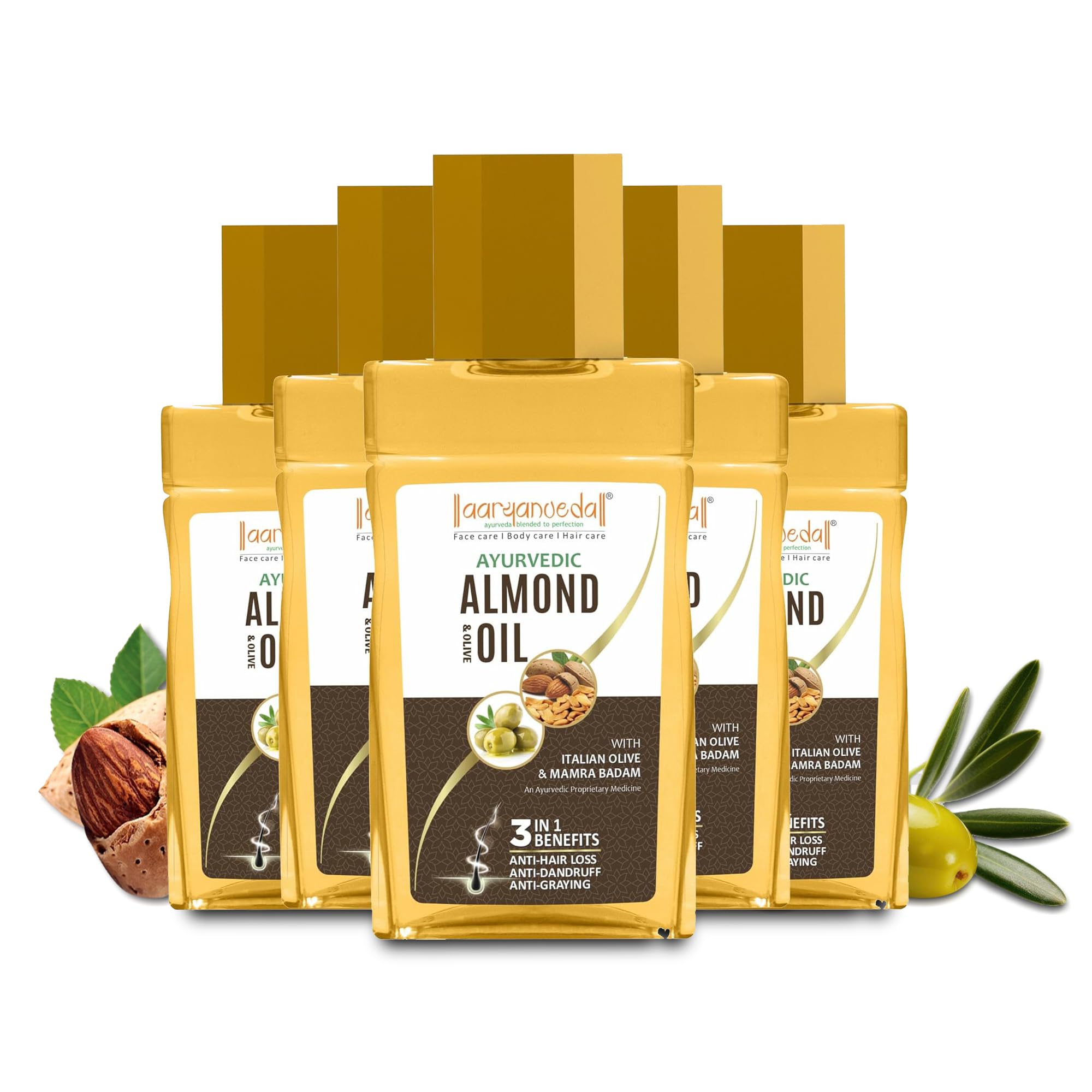 HomeHealth & PersonalHair CareHerbal Hair OilAryanveda Ayurvedic Almond & Olive Hair Oil With Italian Olive & Mamra Badam, Anti - Hairloss, Anti - Dandruff & Anti- Graying, For All Hair Types; 200ml (Pack of 5)