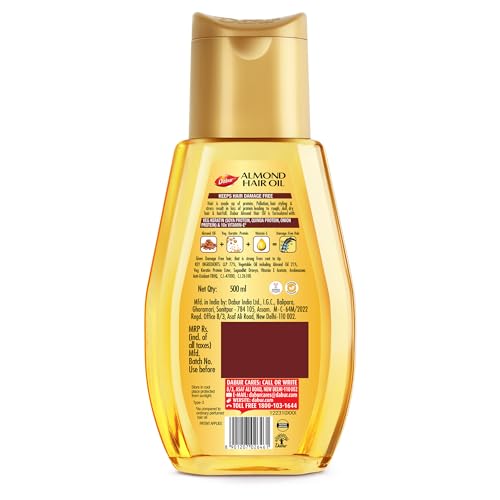 Dabur Almond Hair Oil with Almonds Soya Protein and Vitamin E for Non Sticky Damage free Hair - 500m