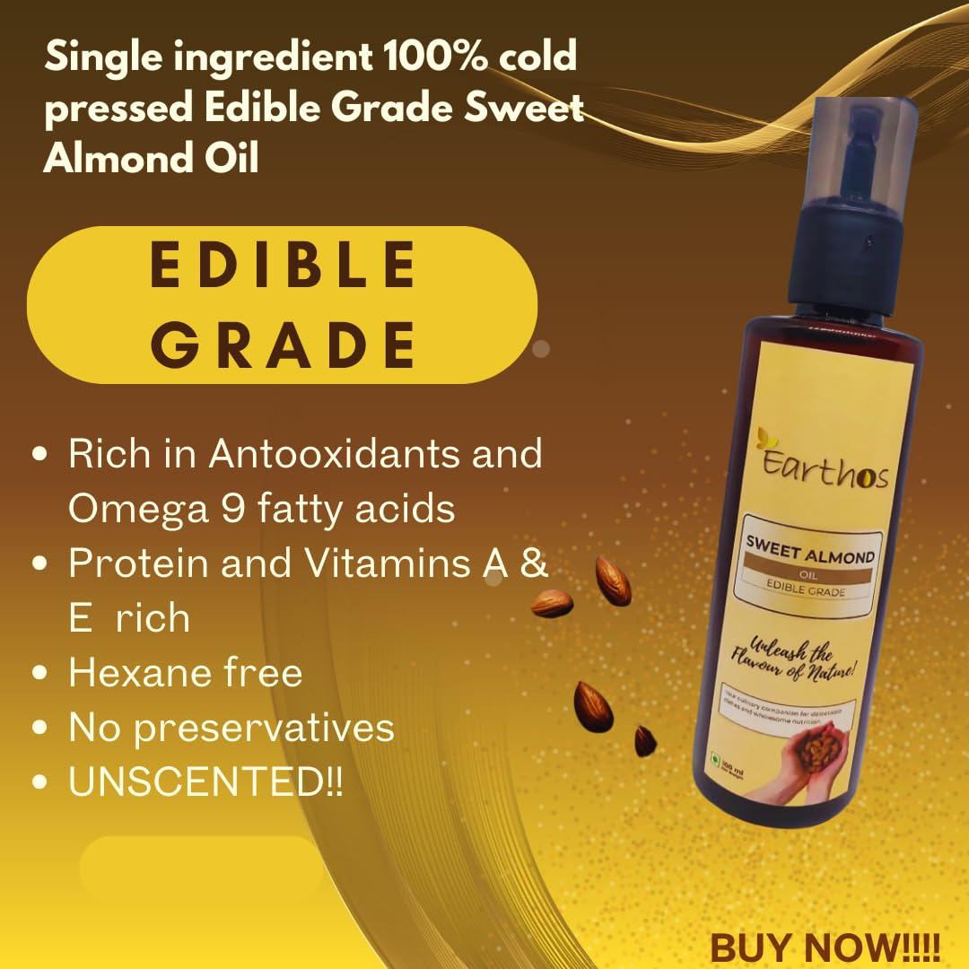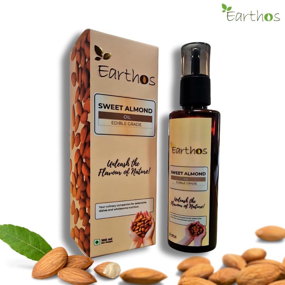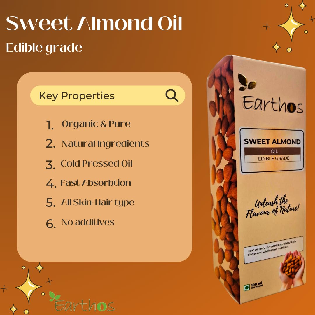 Earthos 100% Sweet Almond Oil | Body | Edible grade | Vitmanin E | authentic | Natural | Good for Skin | Good for Hair | 100ml
