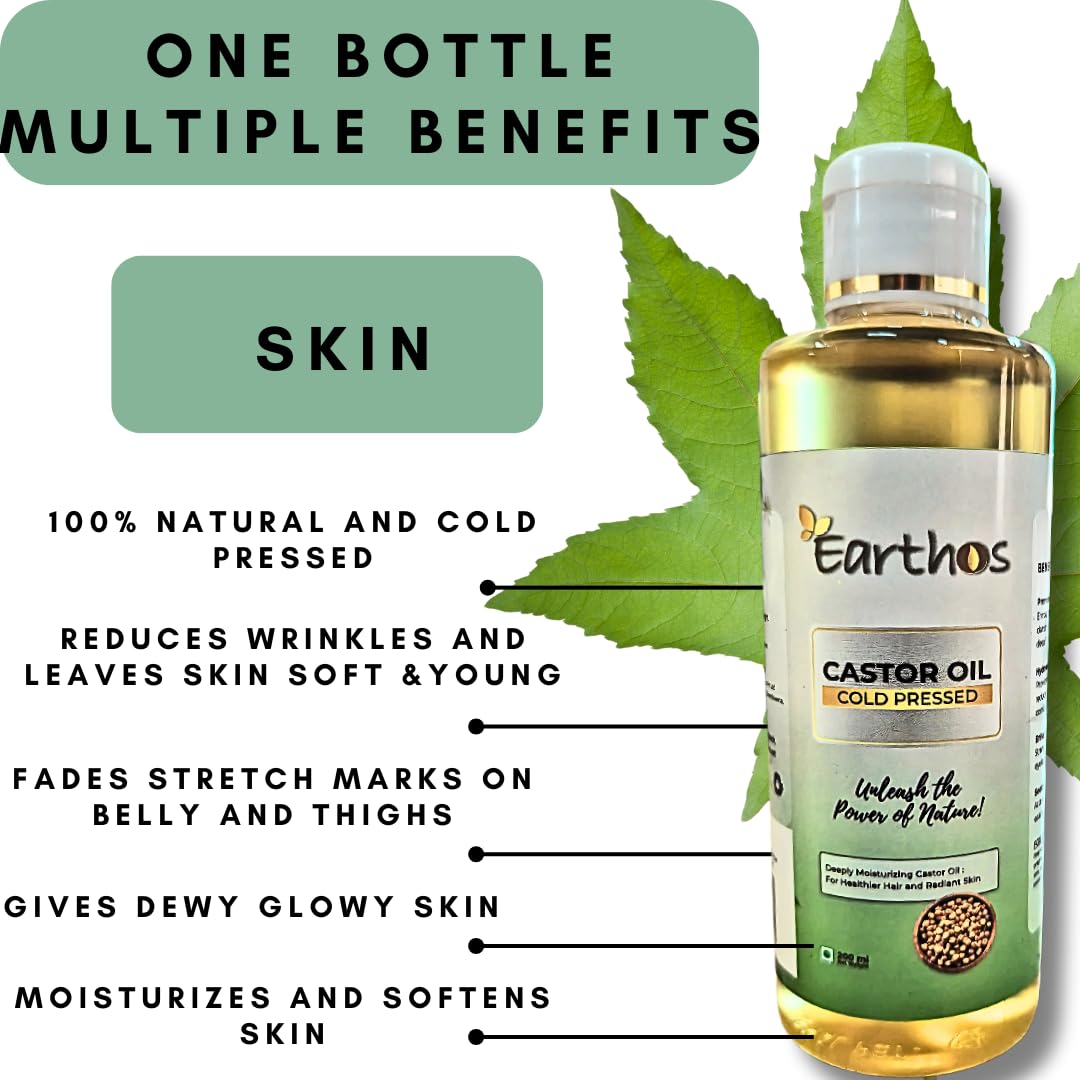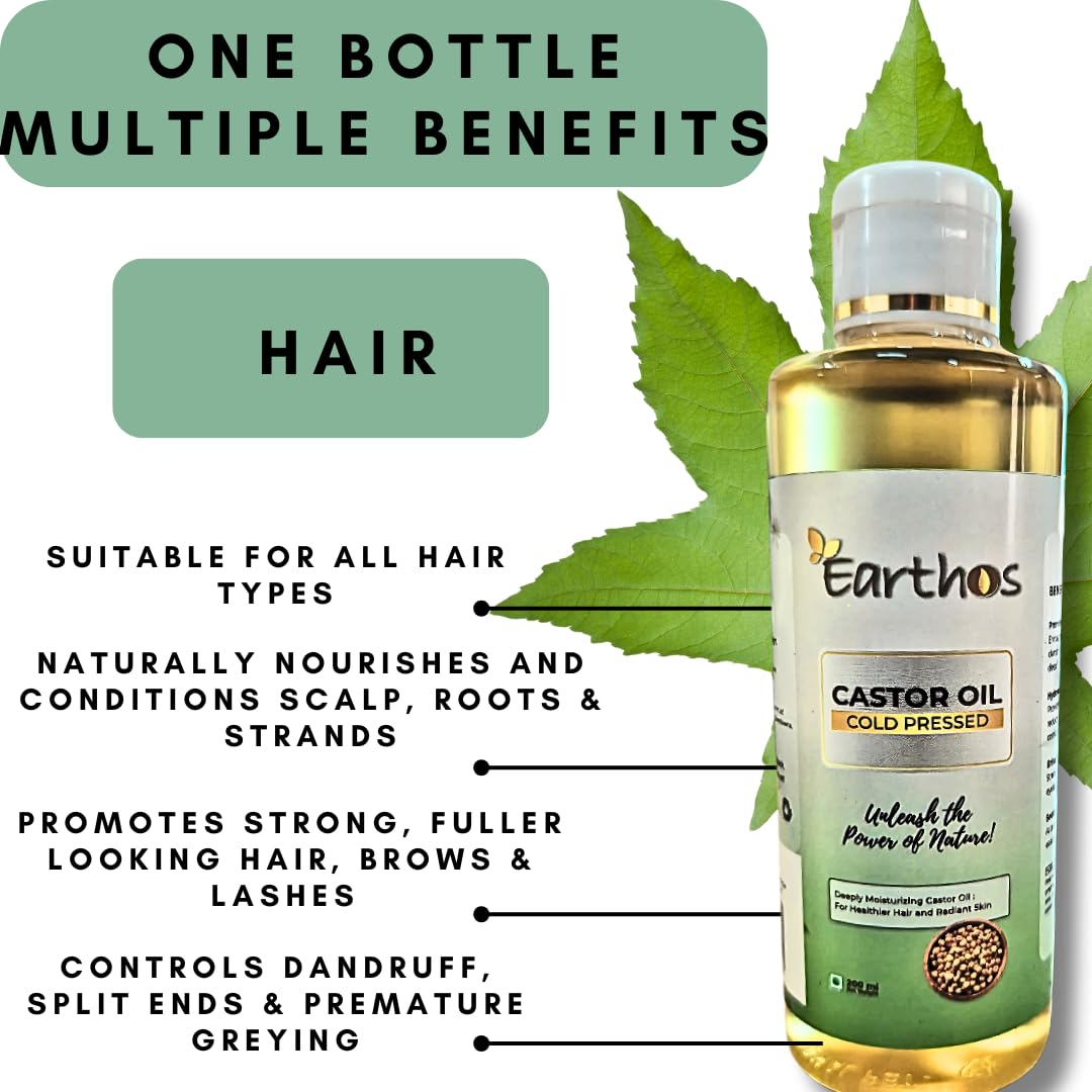 Earthos Castor Oil cold pressed |400 ml | Hair Noursihment| Hair care | 100% Natural | chemical free